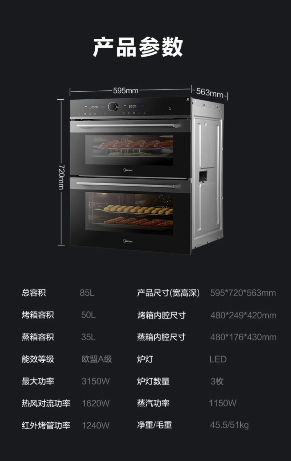 美的(Midea)蒸烤一体机D50S3AT1+BS50D0W