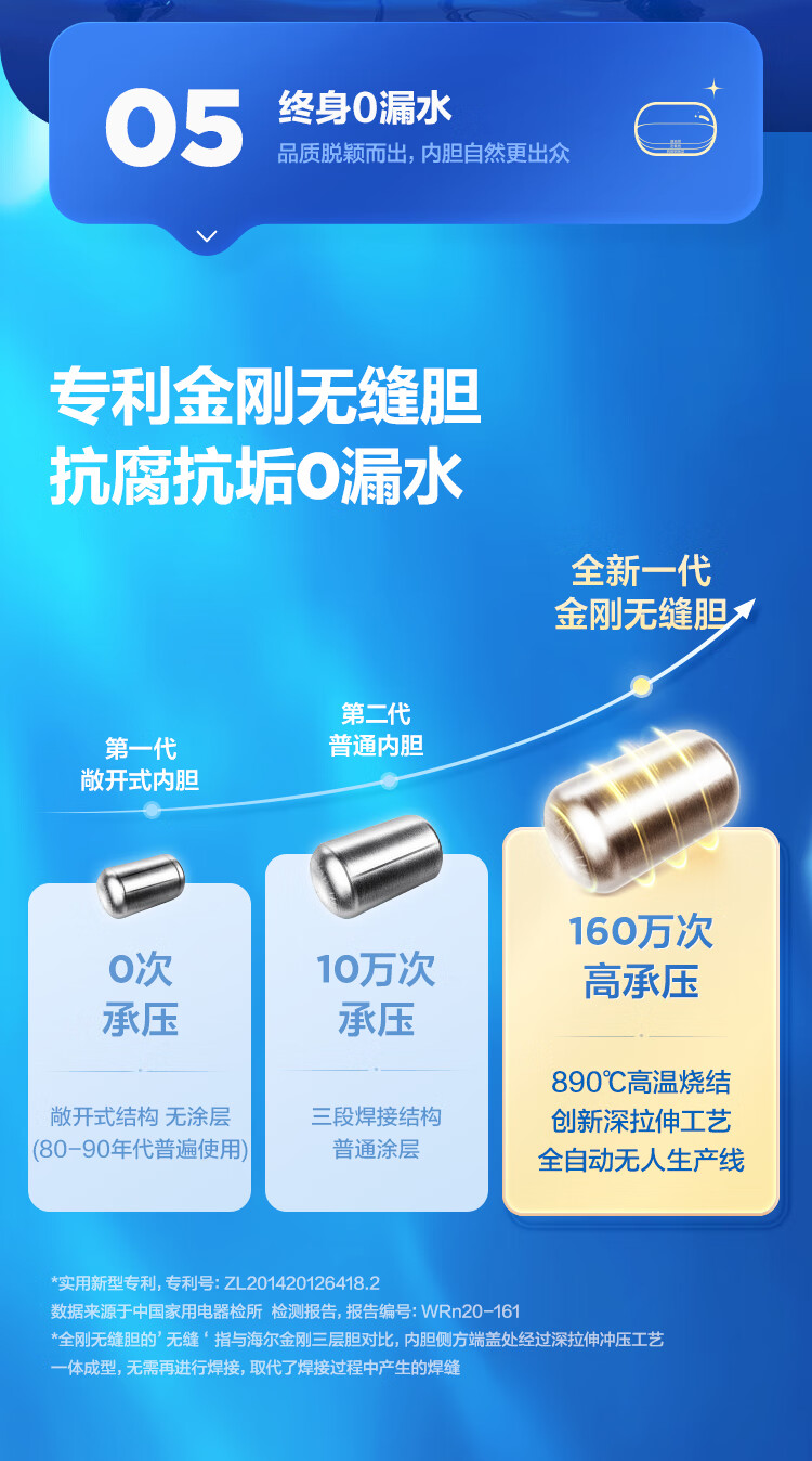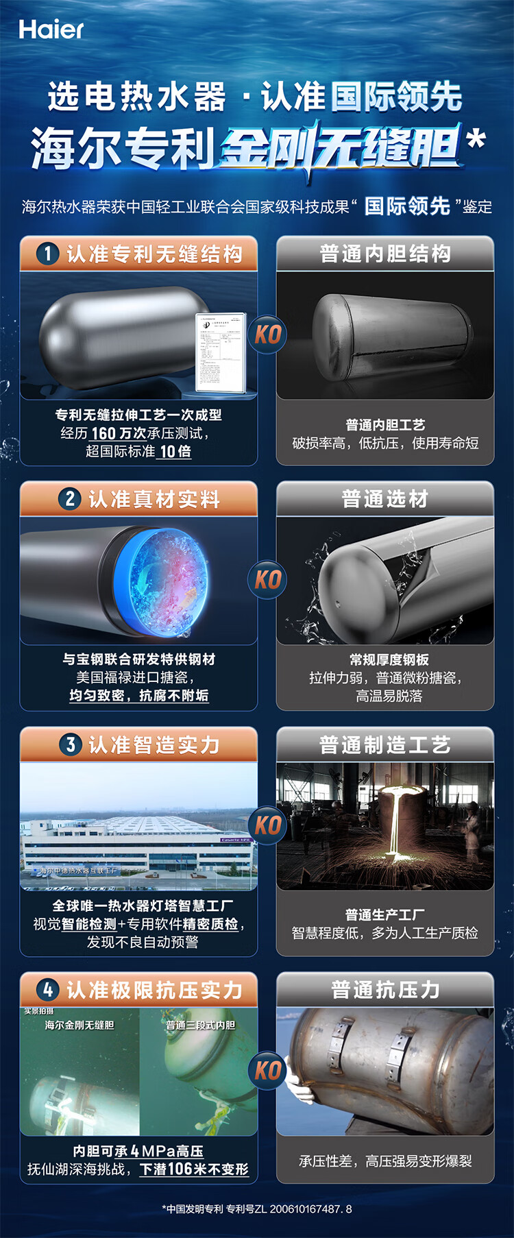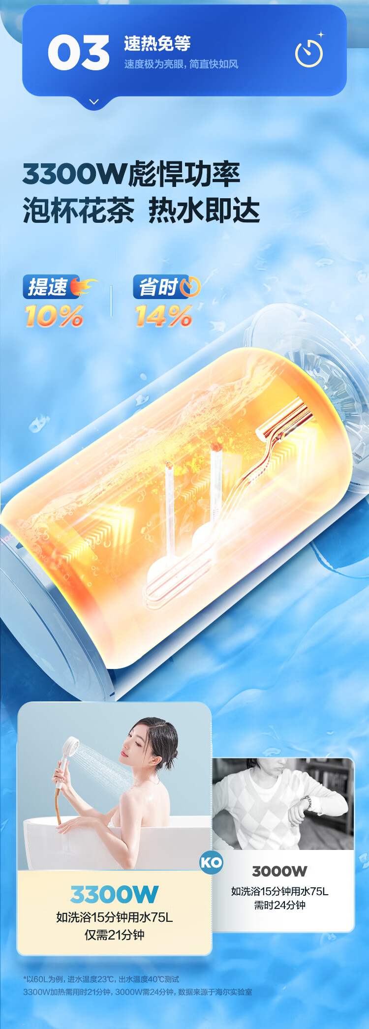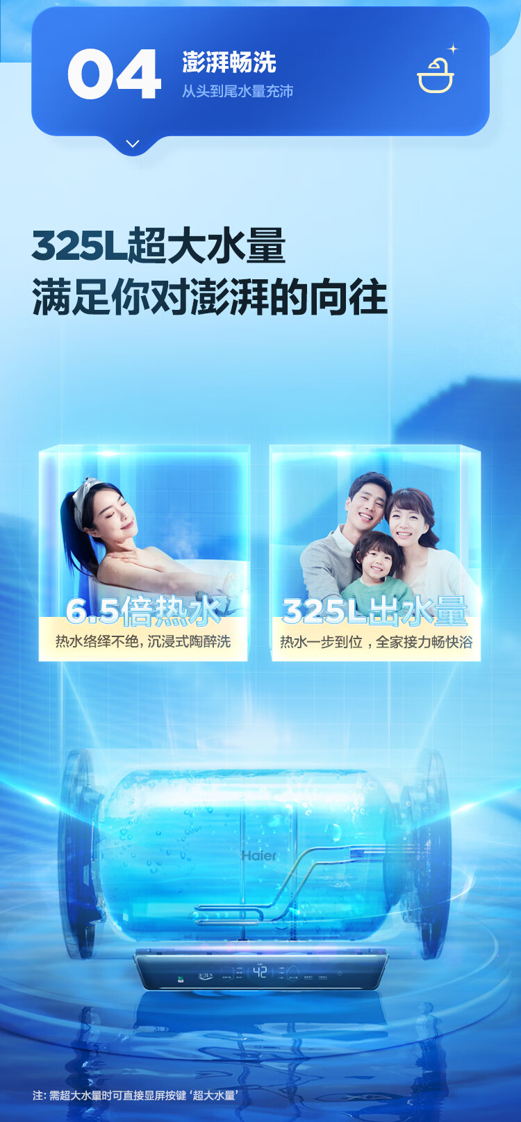海尔(Haier)80升 电热水器 3300W大功率 速热 增容大水量 金刚无缝胆 水质可视 WiFi智控 一级能效 EC8001-JH3U1