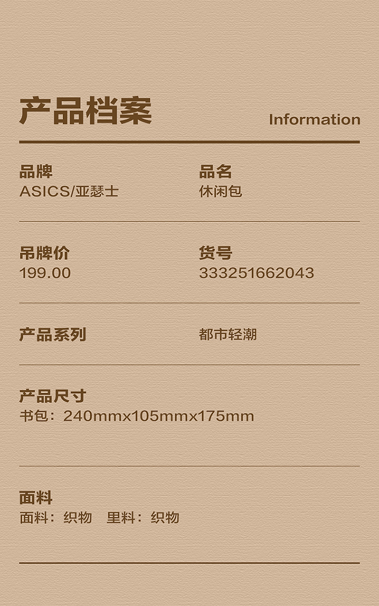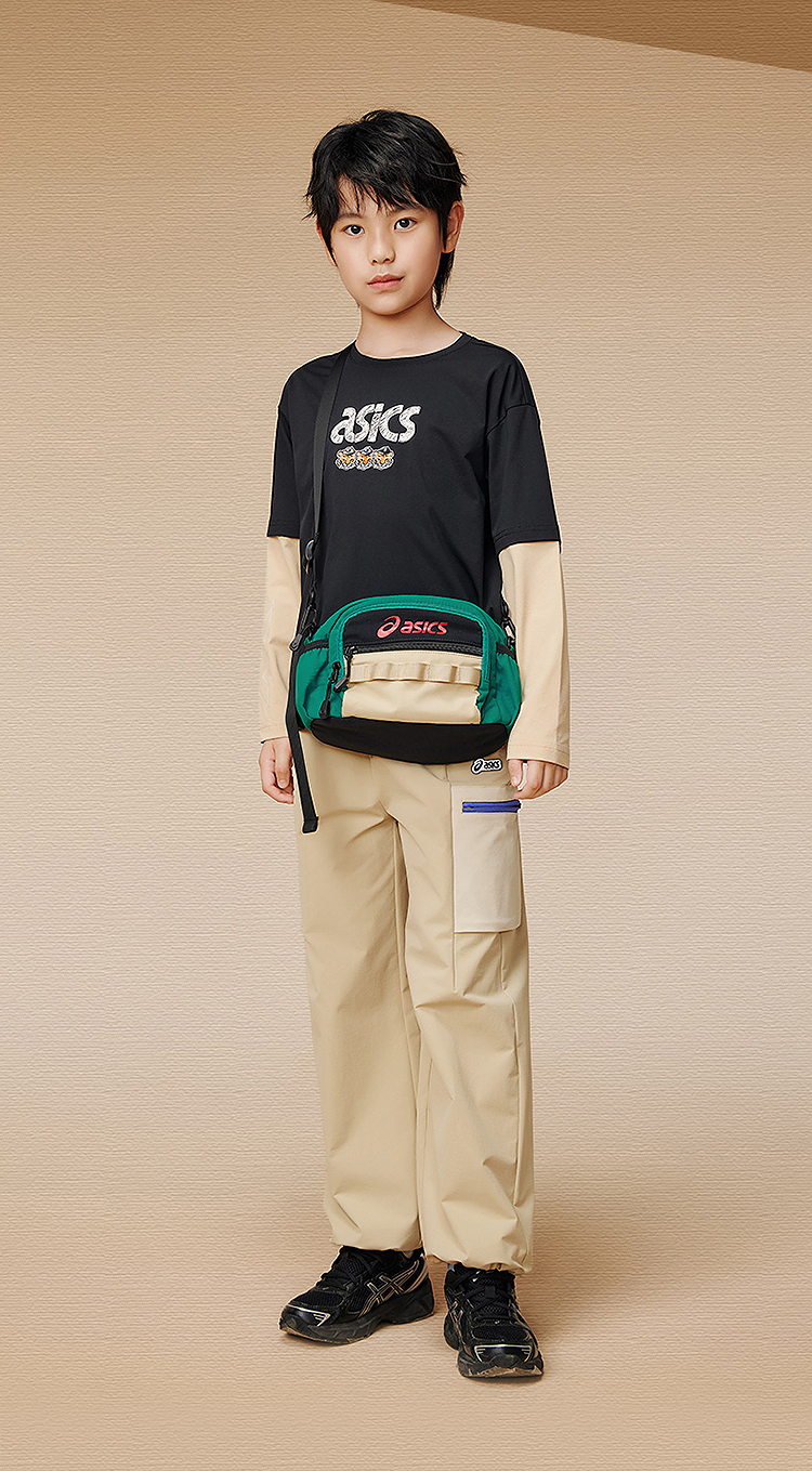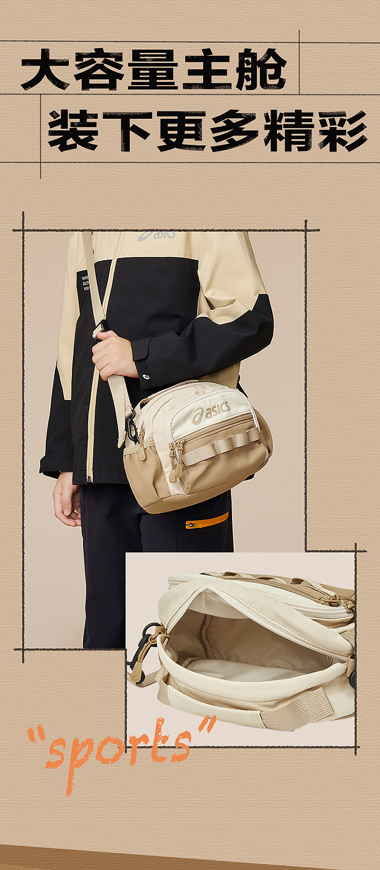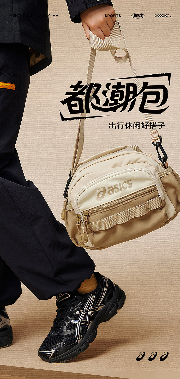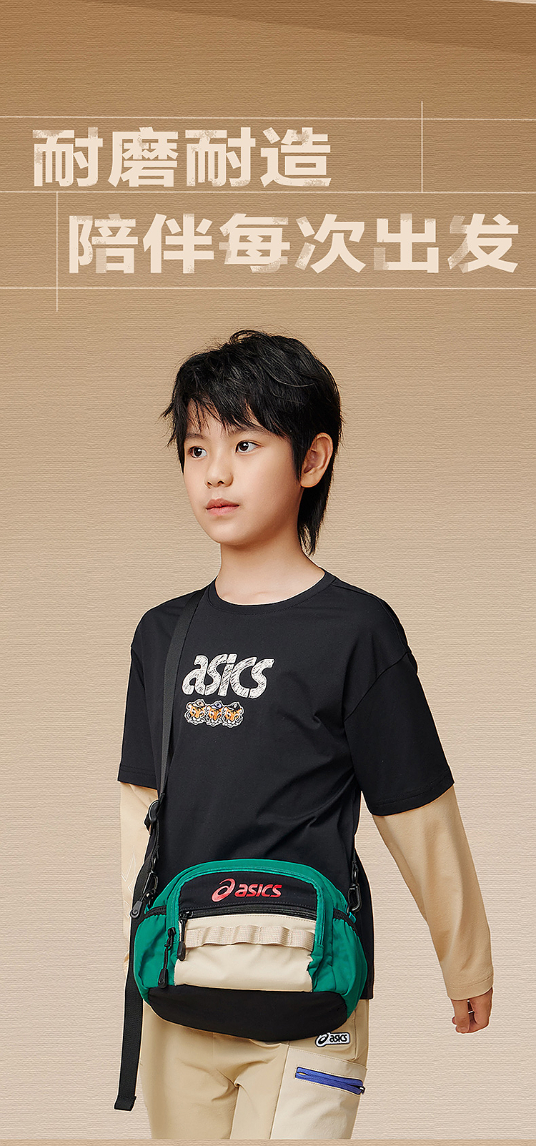 ASICS/亚瑟士儿童25年新款户外单肩大容量撞色挎包轻量耐磨防泼水