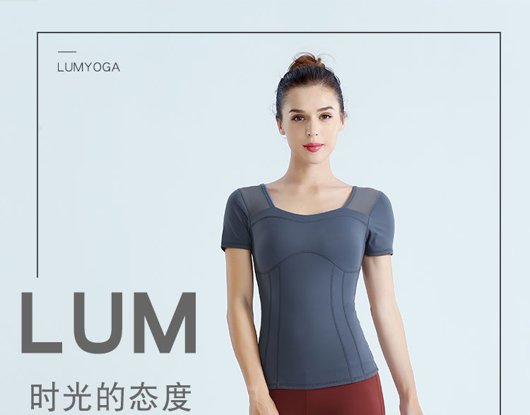 露檬瑜伽新款裸感系列瑜伽服短袖(含胸垫)LUM39122