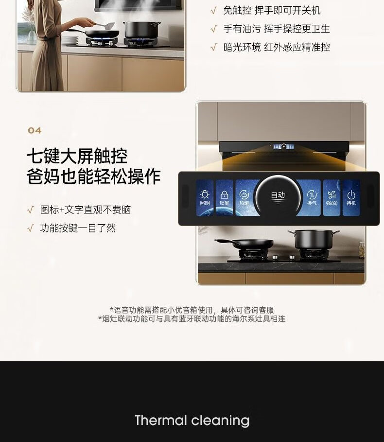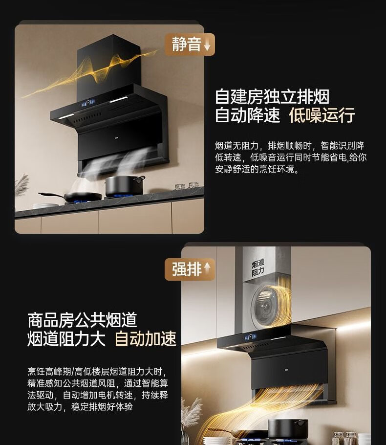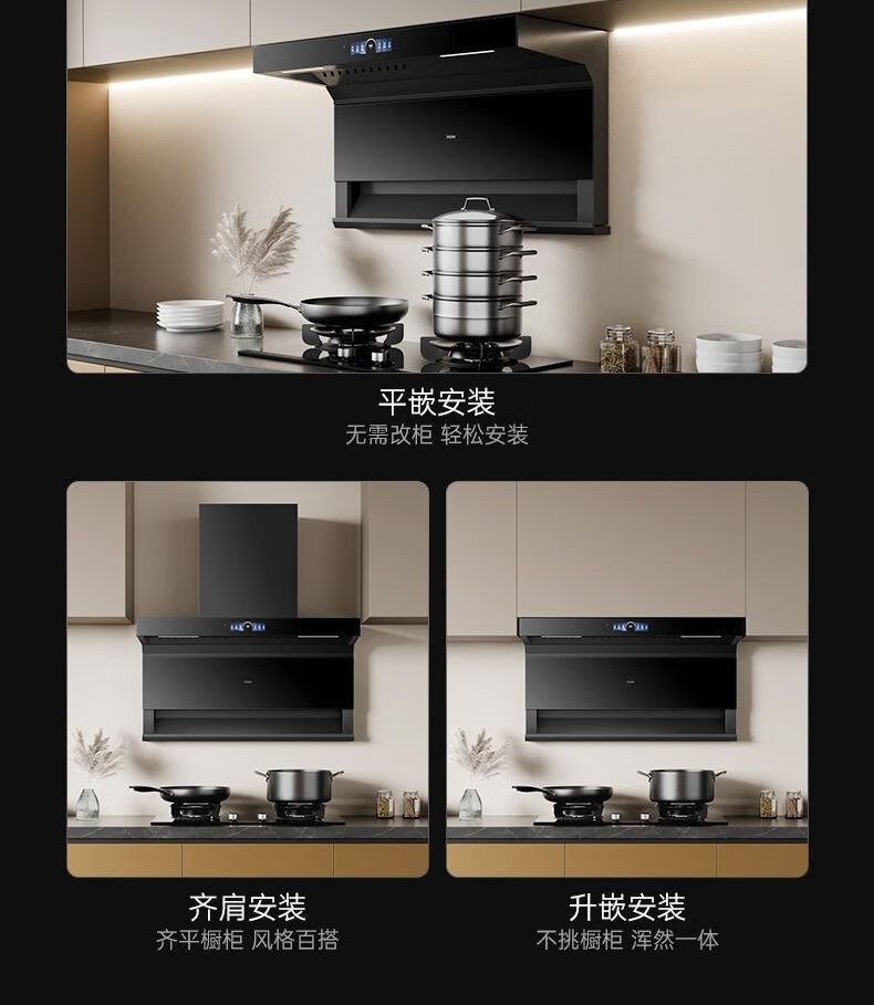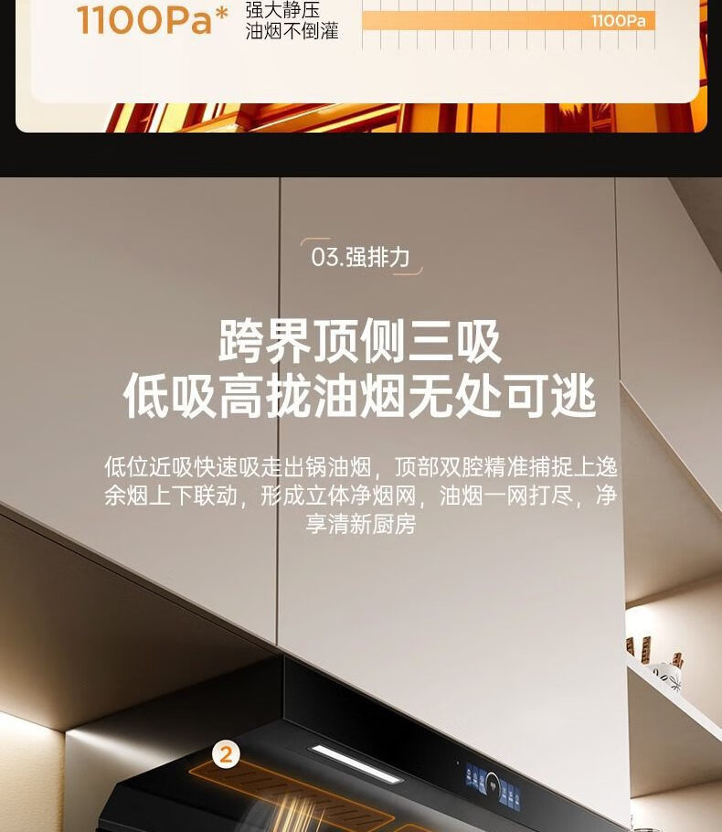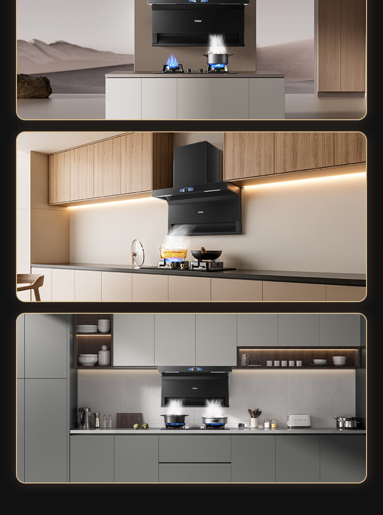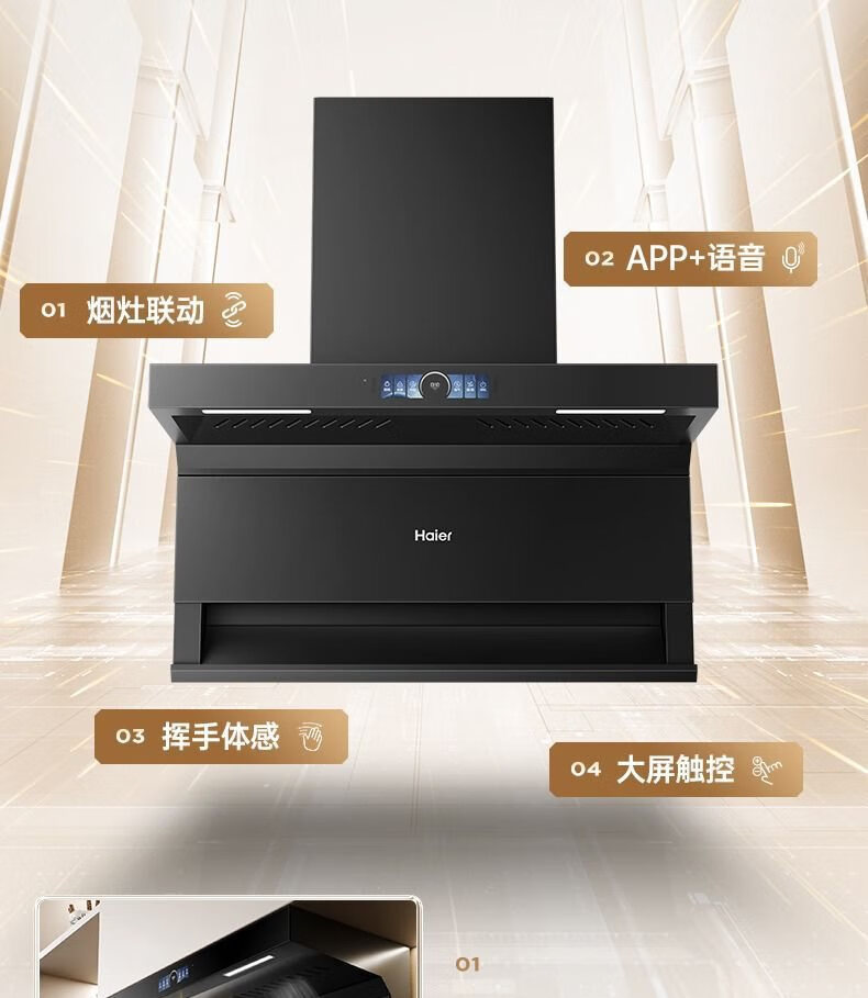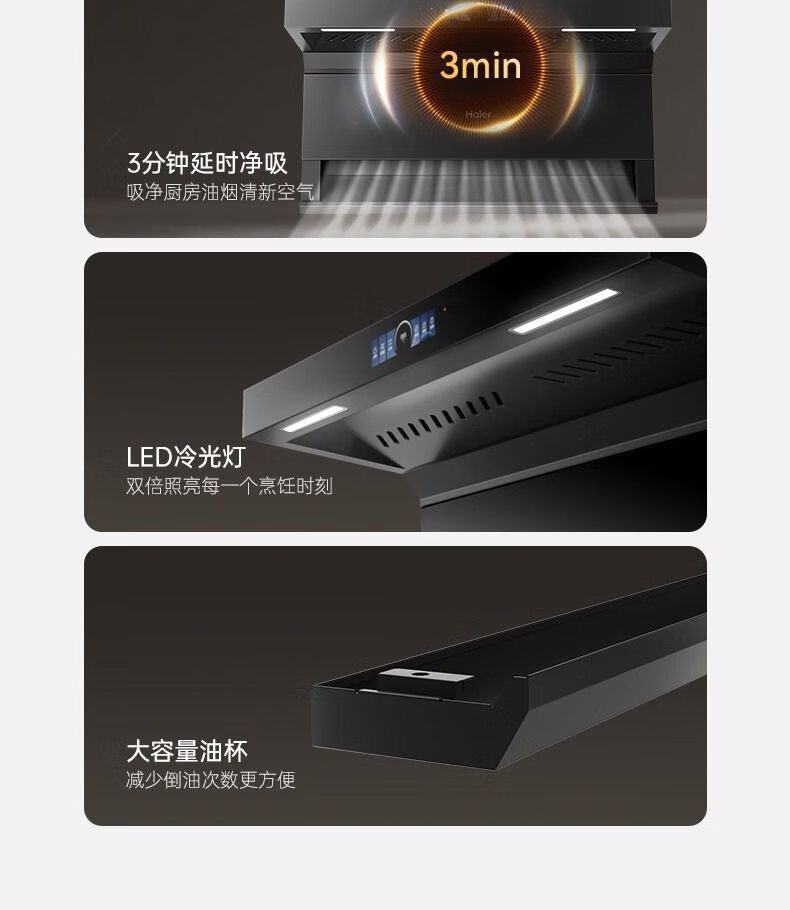 海尔(Haier)变频巡航顶侧三吸抽油烟机 30立方大吸力 烟灶联动 1100Pa静压热熔自清洁家用油烟机EC739UD