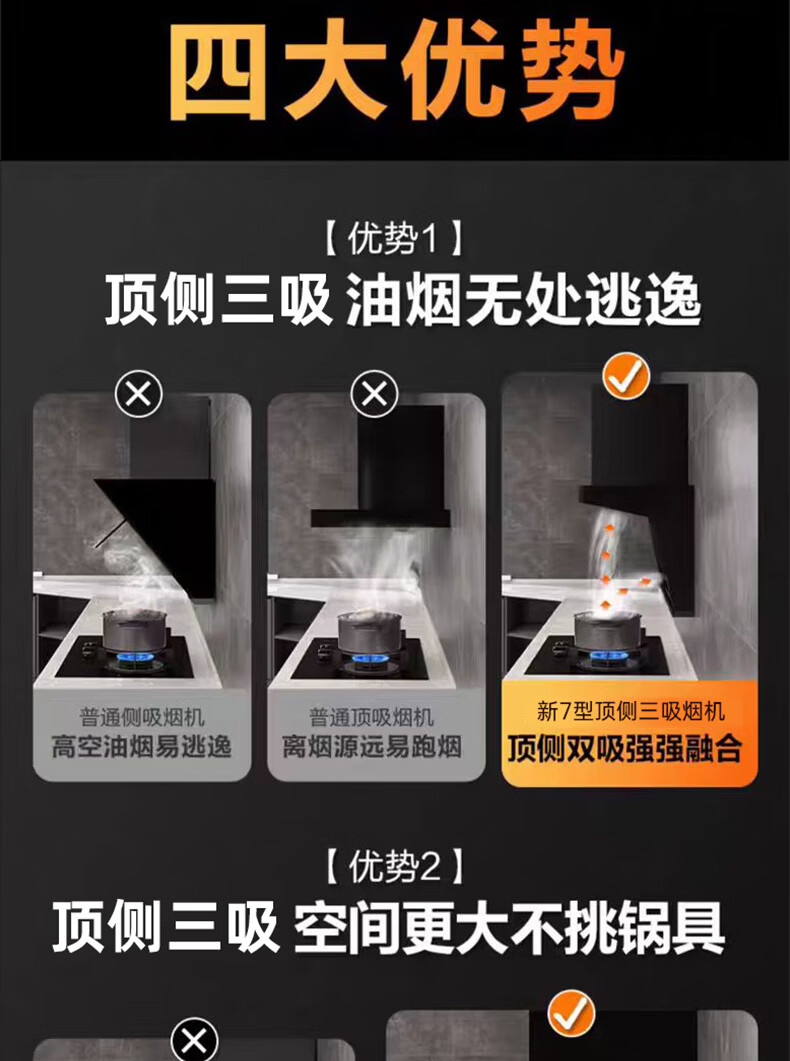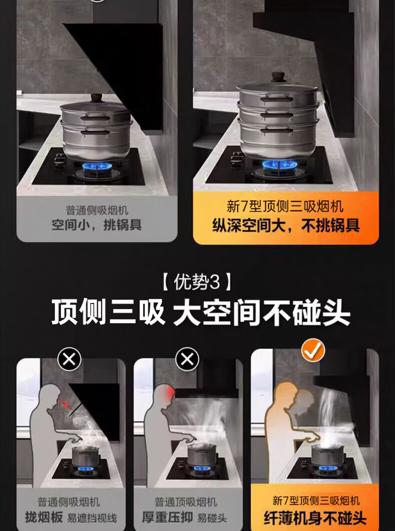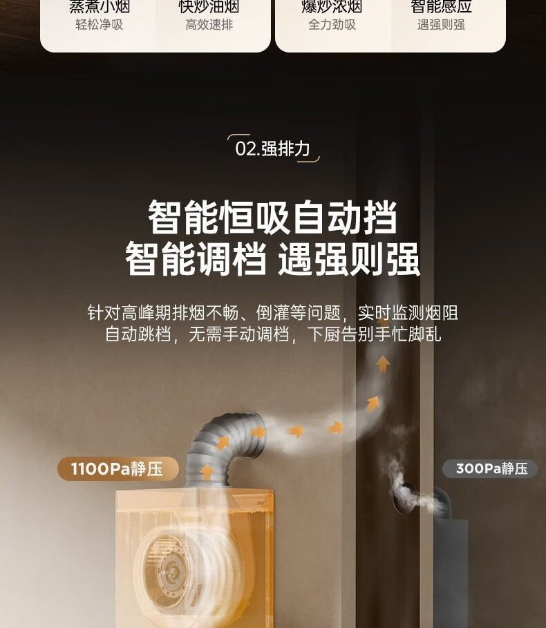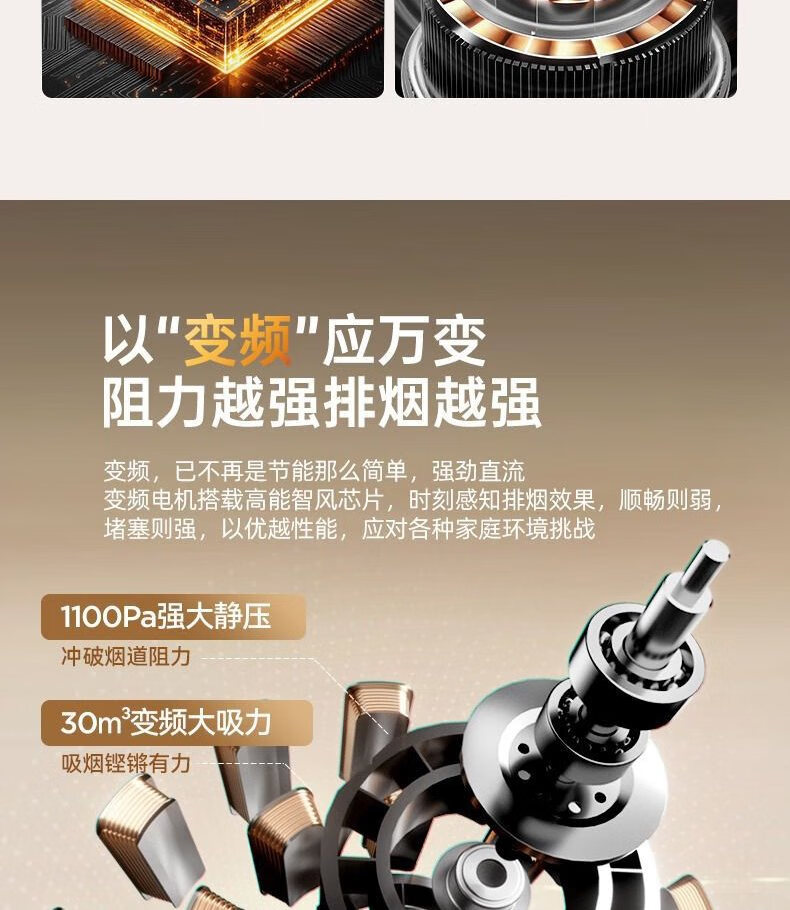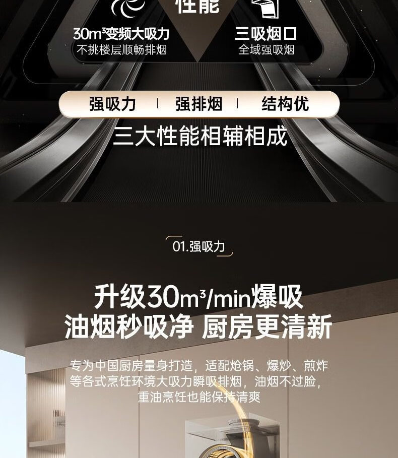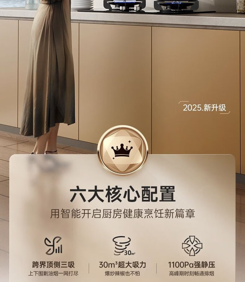 海尔(Haier)变频巡航顶侧三吸抽油烟机 30立方大吸力 烟灶联动 1100Pa静压热熔自清洁家用油烟机EC739UD