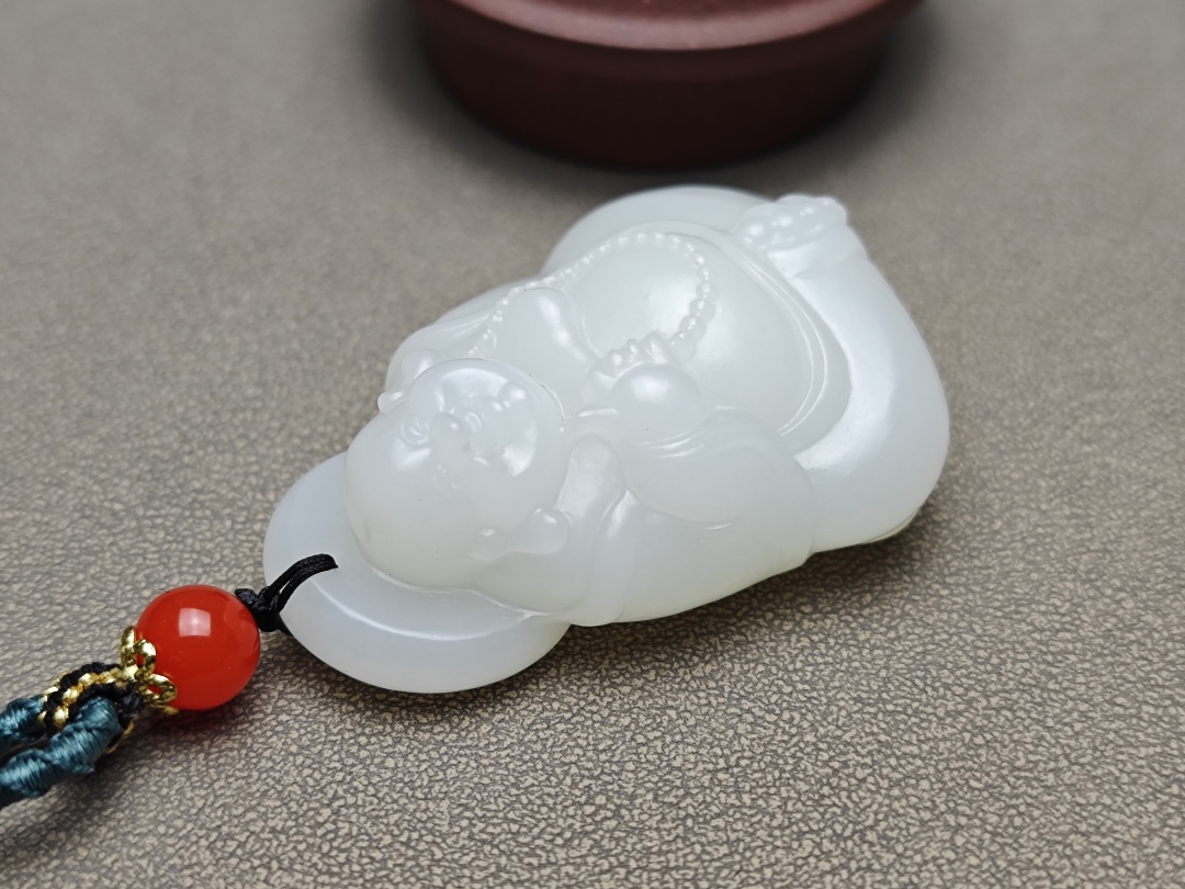 精品!新疆和田玉且末料羊脂玉饱满弥勒佛,细腻油润,密度高,脂分足,肉质好,饱满圆润,肉疙瘩,一口气,非常贵气的弥勒佛,大肚能容天下事,笑口常开,喜相逢,苏工雕刻,精美生动,完美耐看的宝贝,值得收藏!