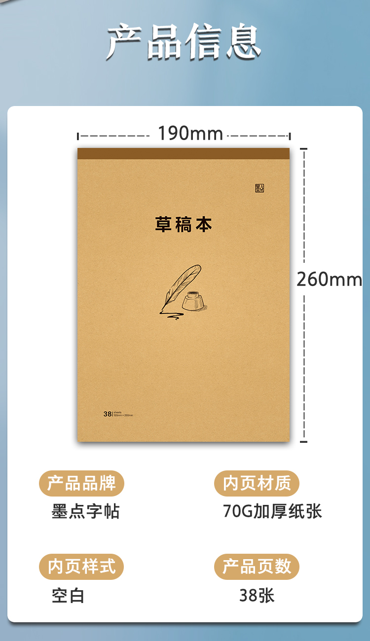 墨点文创 草稿本 加厚草稿纸数学16k空白纸学生专用简约白纸演算纸