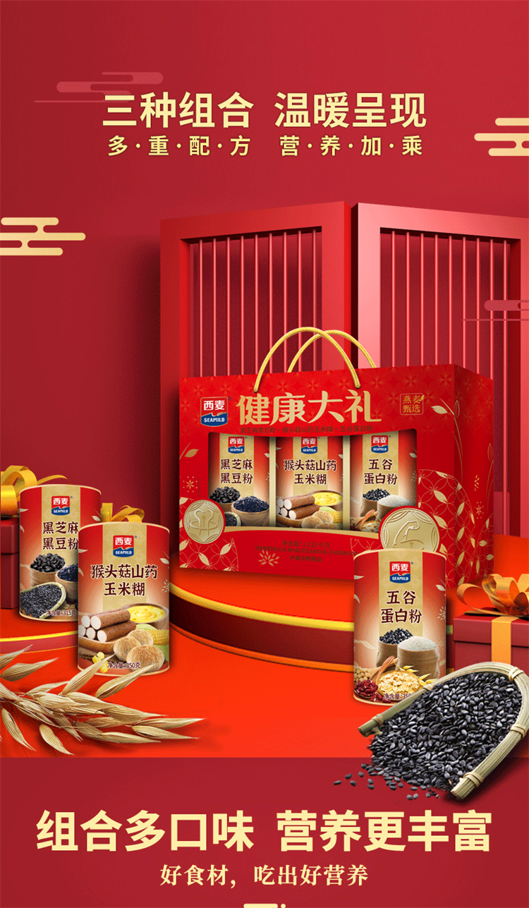 燕麦甄选健康礼盒1.015kg盒装多口味高纤维即食早餐家庭健康礼赠装