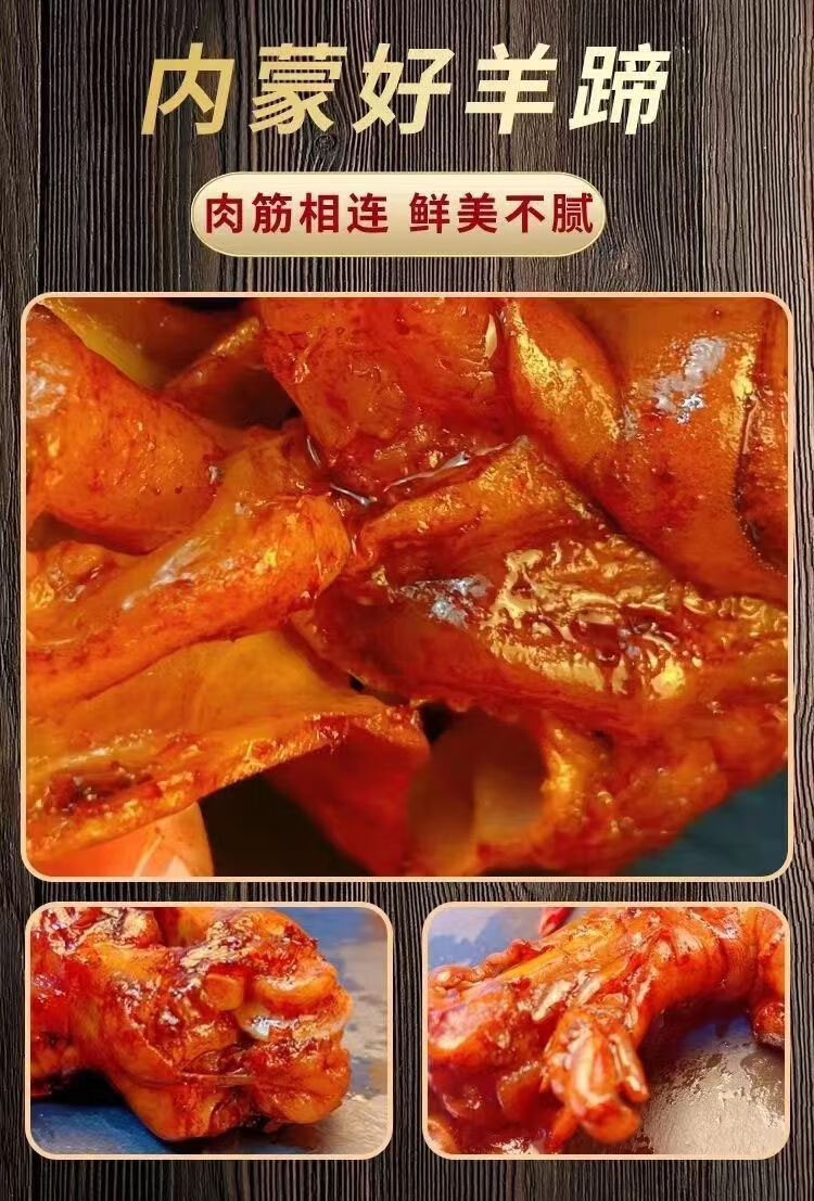 老北京红焖羊蹄,9袋组合,采用内蒙古草原羔羊蹄,多味香辛料,原汁老卤,筋肉相连,入口鲜美不腻,香而不膻,越吃越香M