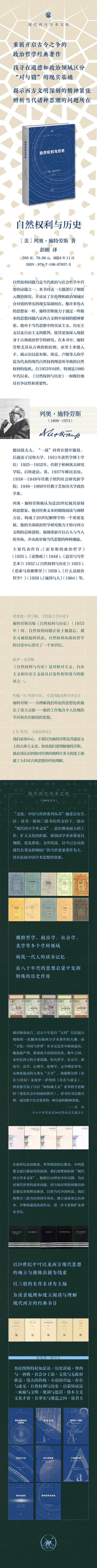 官方正版 现货包邮 自然权利与历史 [美] 列奥•施特劳斯 著 彭刚译 三联书店