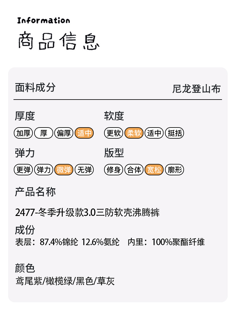 VONBONKIDS 冬季升级款3.0三防软壳裤沸腾裤-2477