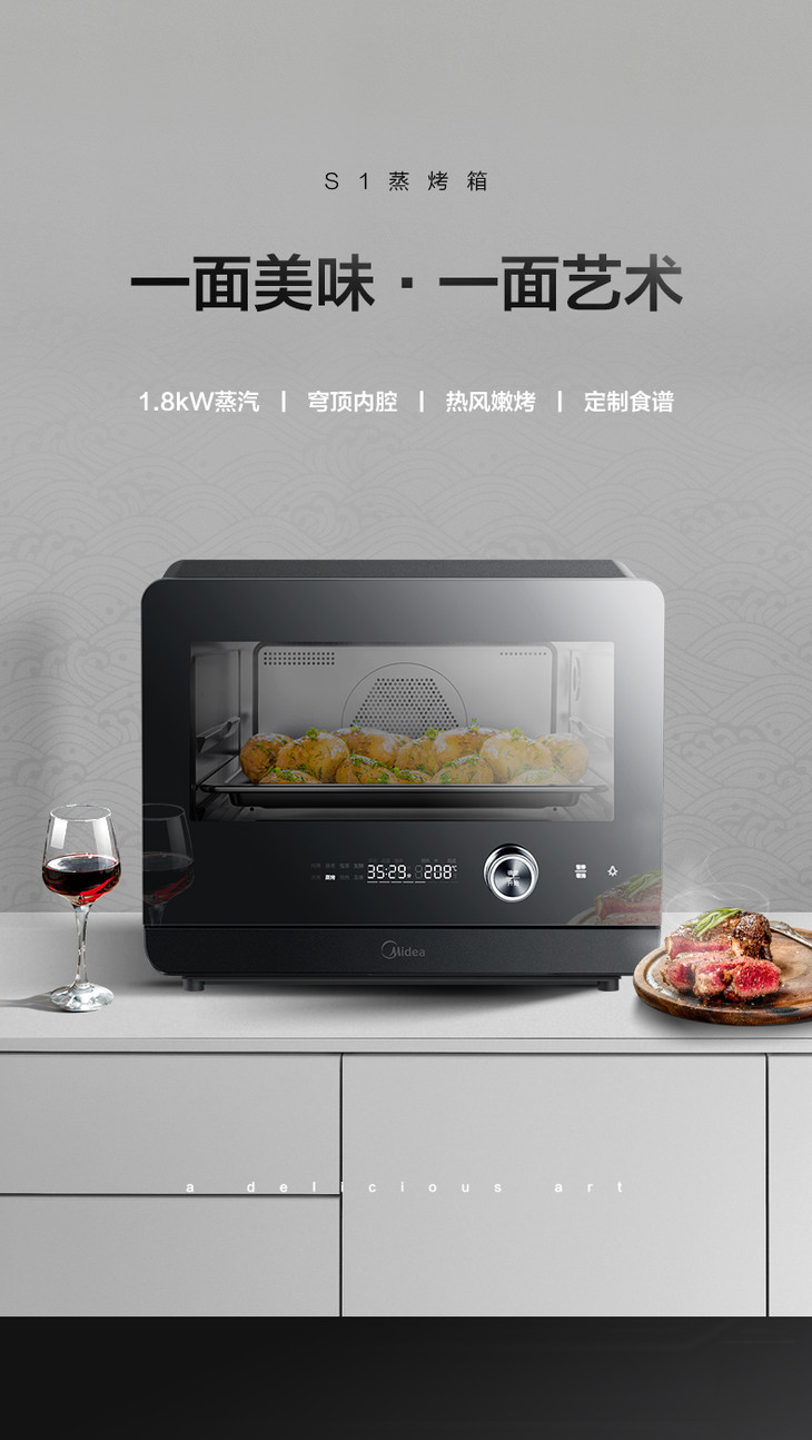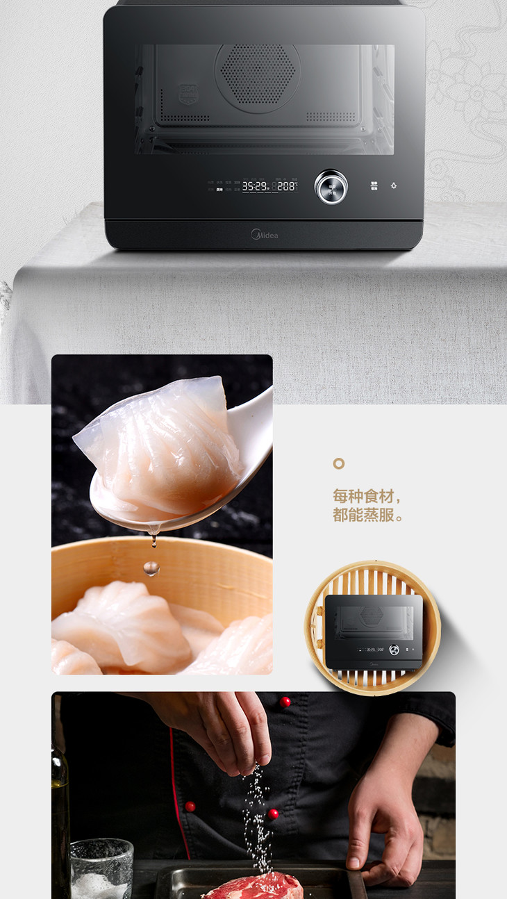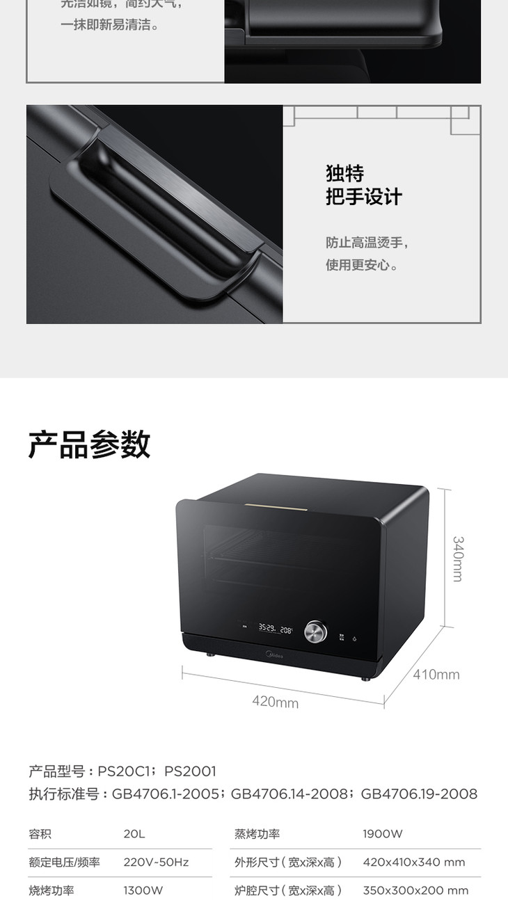 美的(Midea)(508830)PS20C1蒸烤箱一体机 1800W大功率蒸汽 20升 穹顶防滴水 蒸烤合一 上下独立控温白色