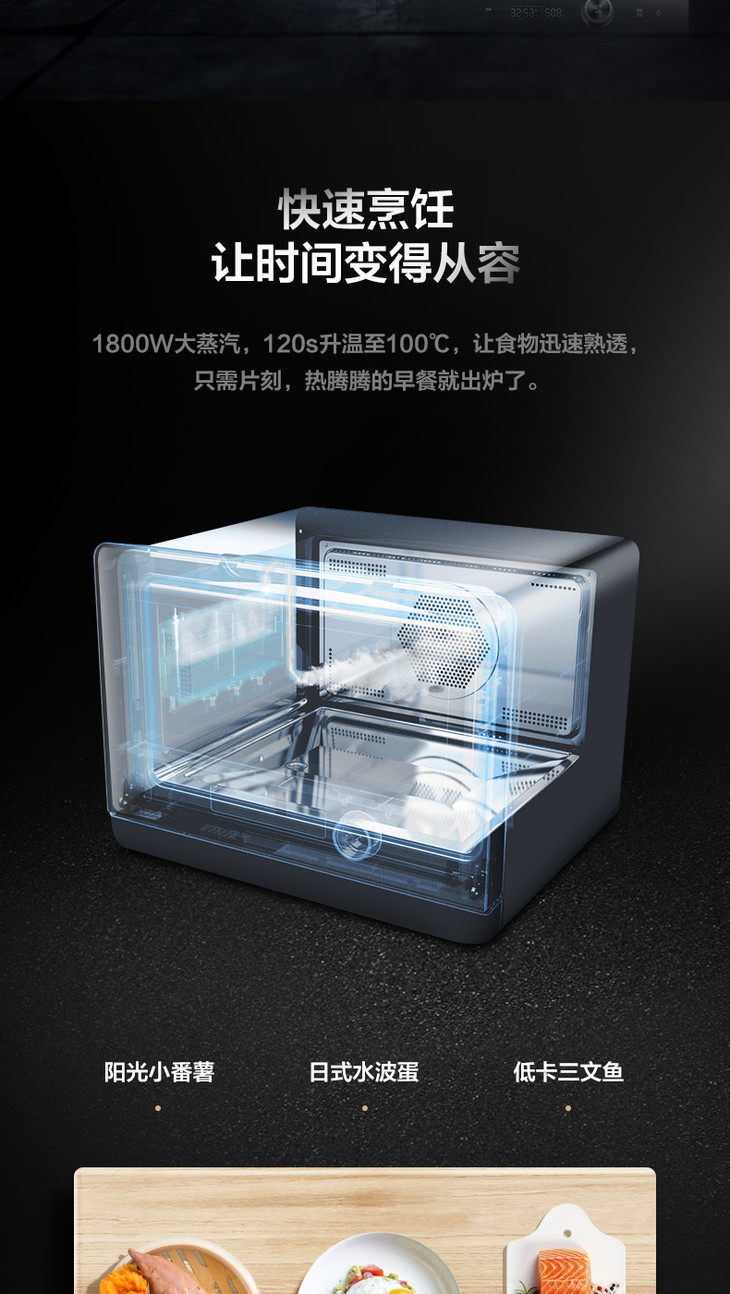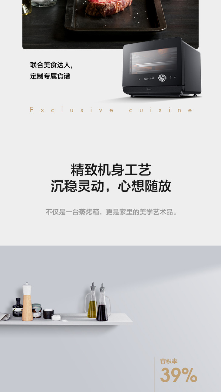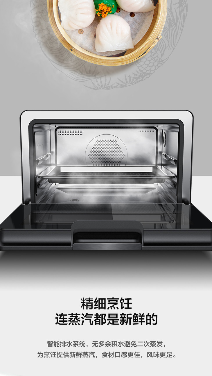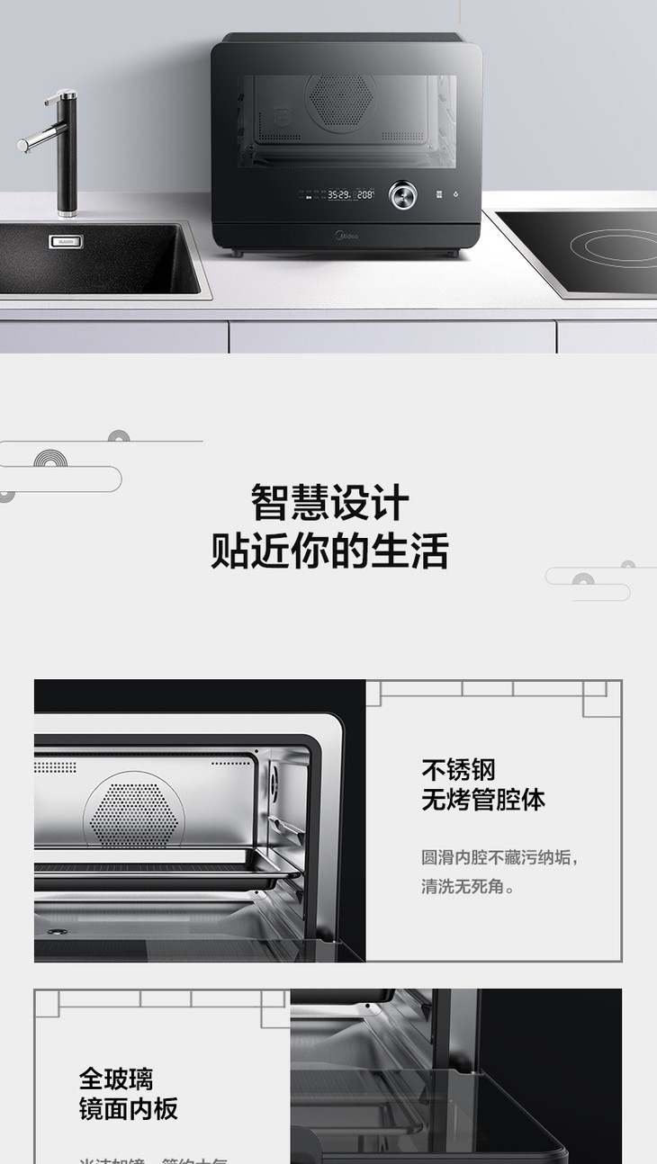 美的(Midea)(508830)PS20C1蒸烤箱一体机 1800W大功率蒸汽 20升 穹顶防滴水 蒸烤合一 上下独立控温白色