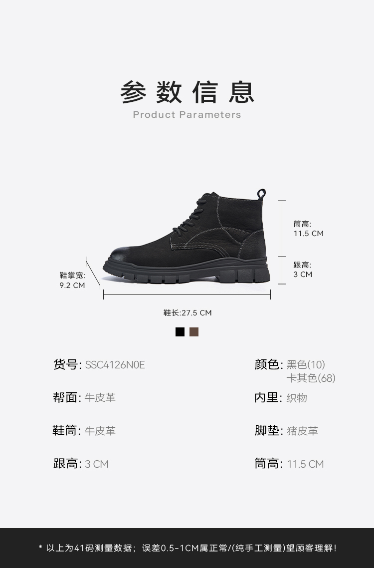 星期六男士复古英伦风擦色牛皮短靴SSC4126N0E
