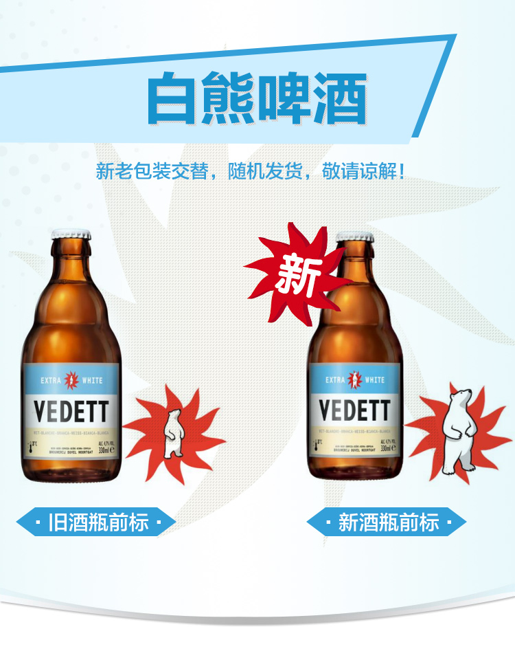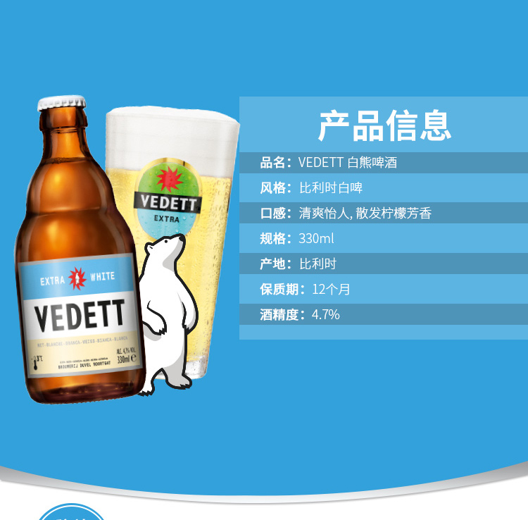 白熊(Vedett Extra White)比利时 原瓶进口 精酿啤酒 白熊啤酒 330ml*6瓶
