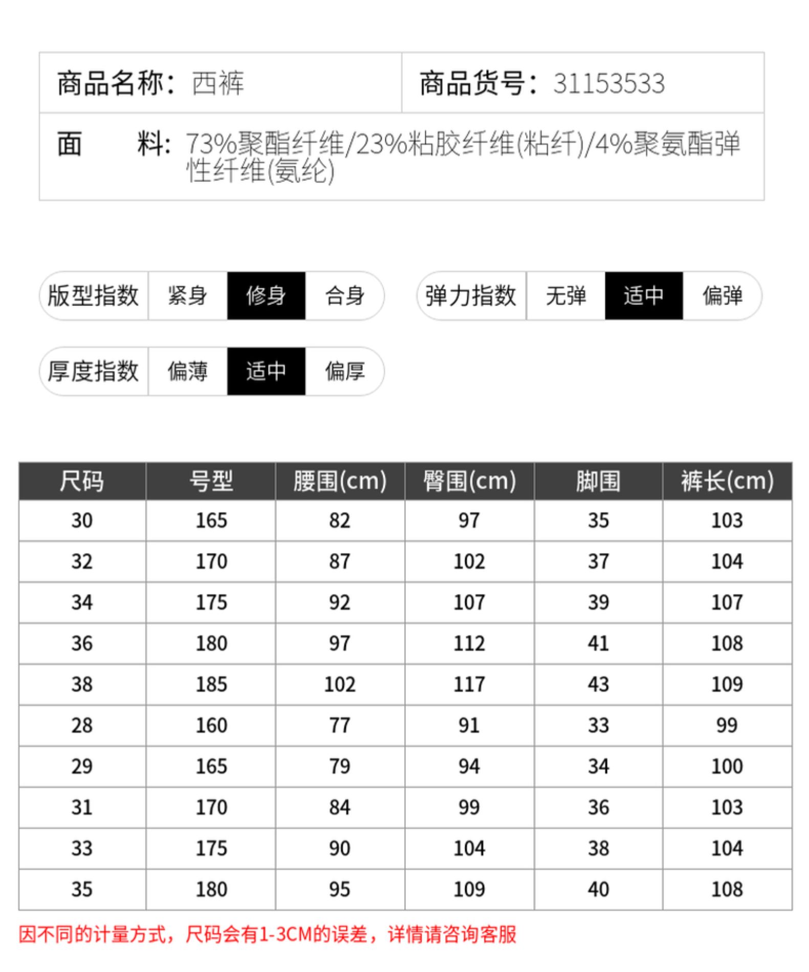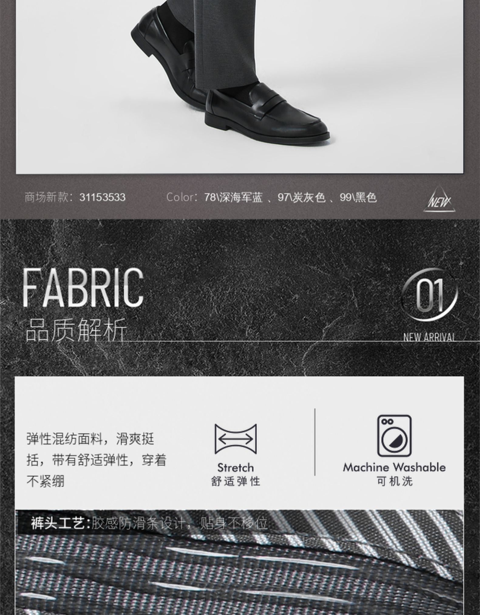 G2000男装商务修身剪裁新款排汗弹性可机洗正装西裤31153533