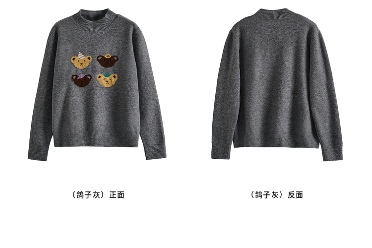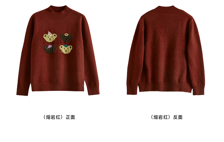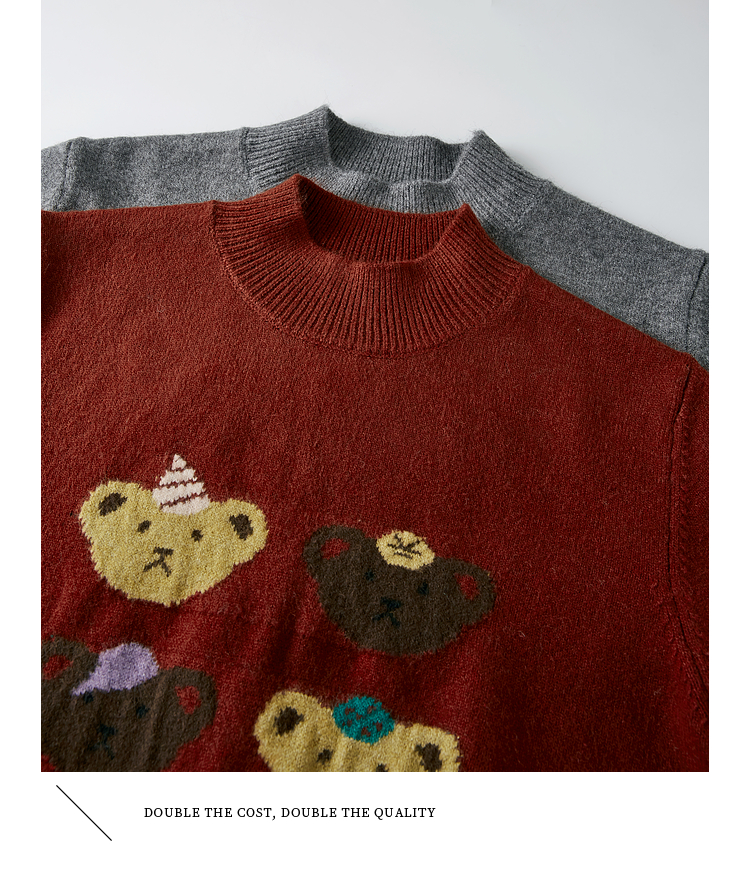 【99元福袋,不支持退换】熙世界复古卡通小熊提花圆领毛衣2025春新款趣味减龄套头针织衫
