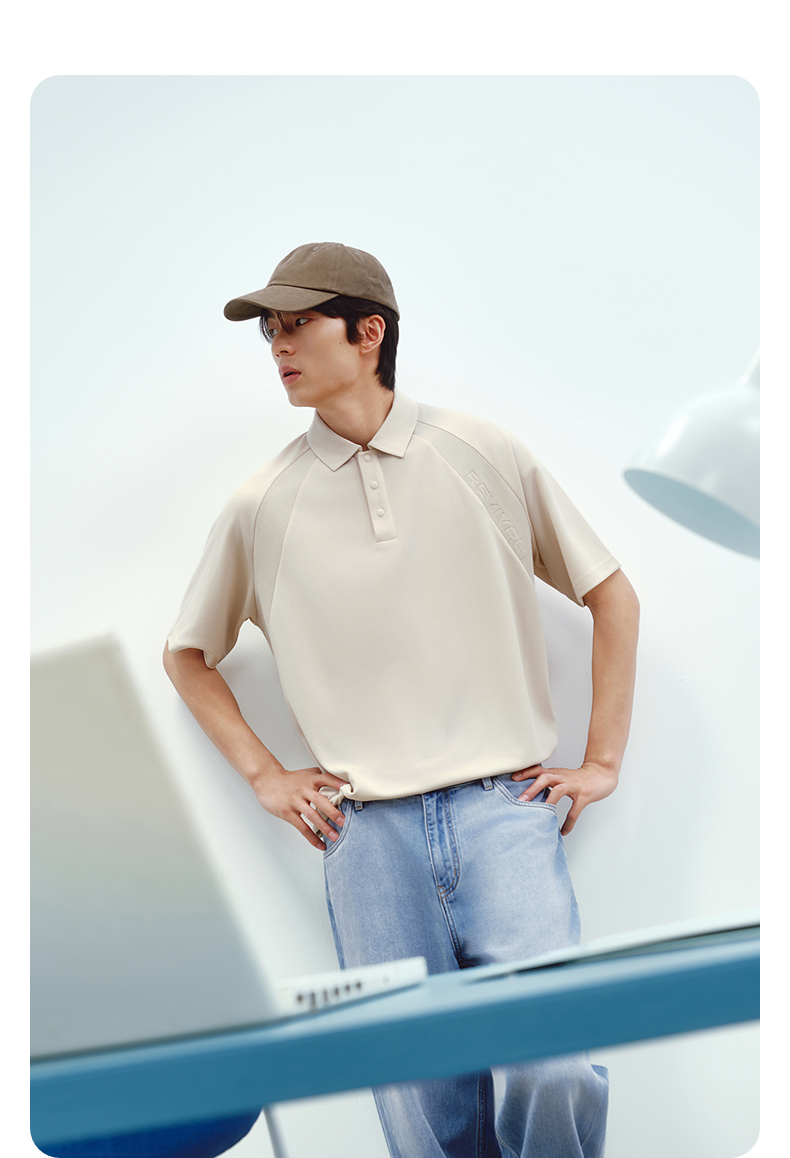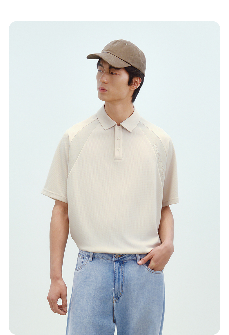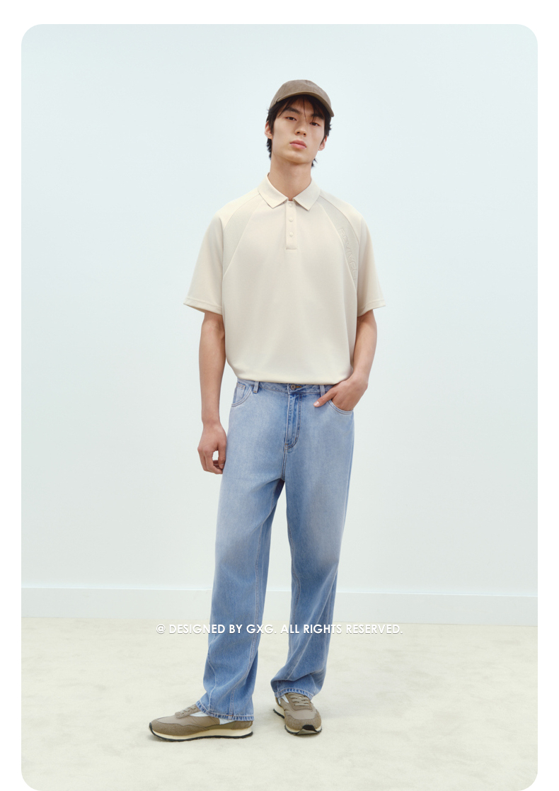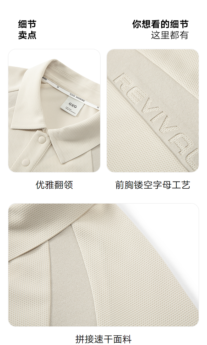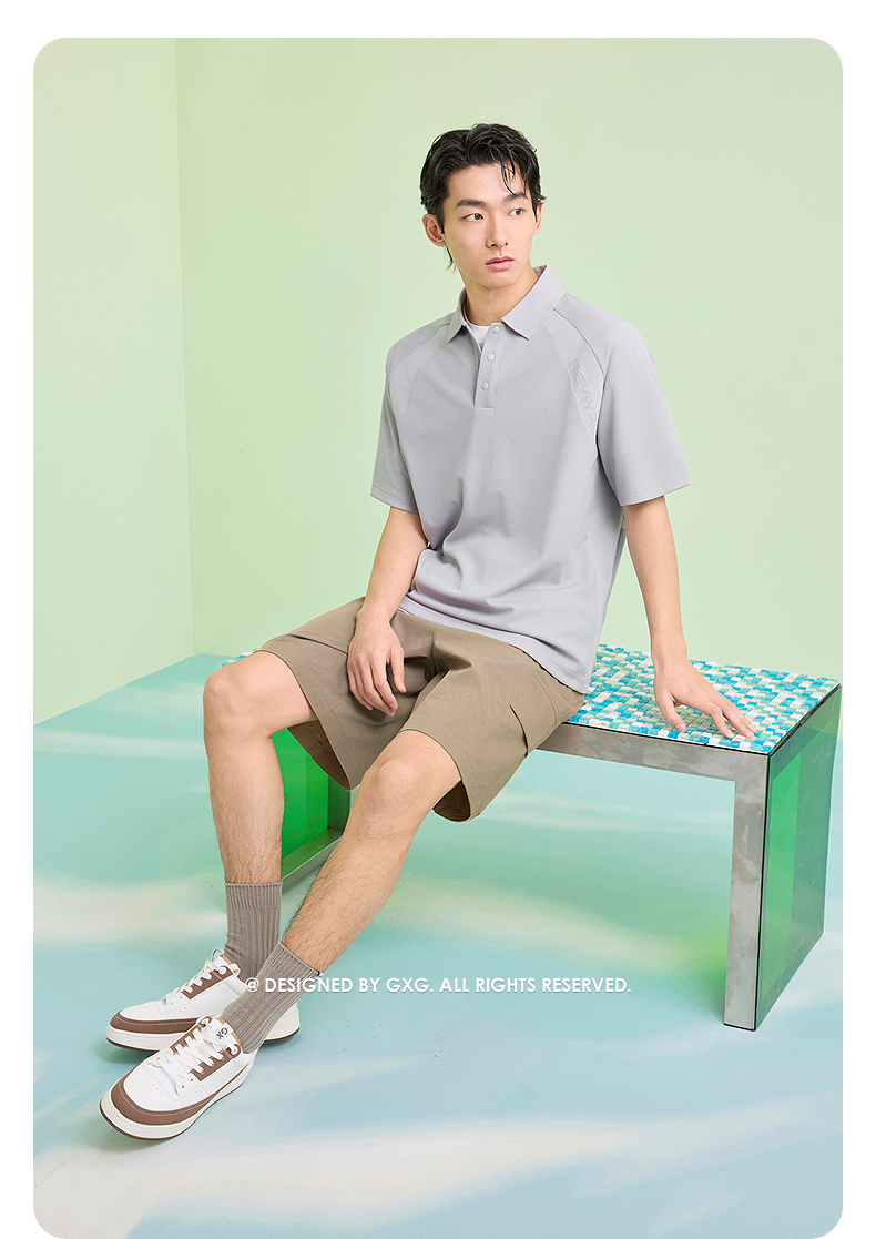 GXG男装 肩部拼接肌理透气polo衫男士休闲上衣翻领短袖 25夏新品