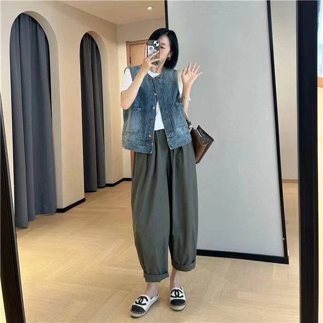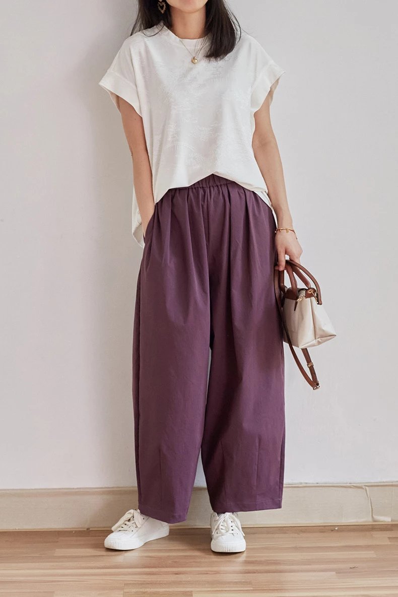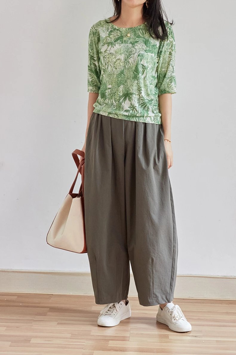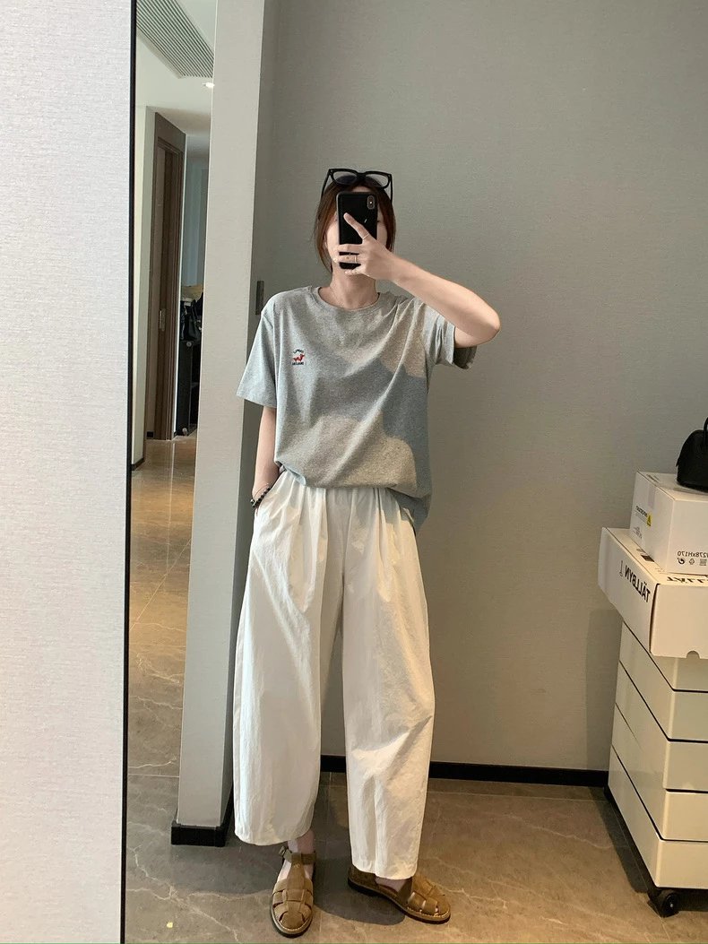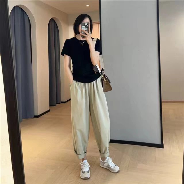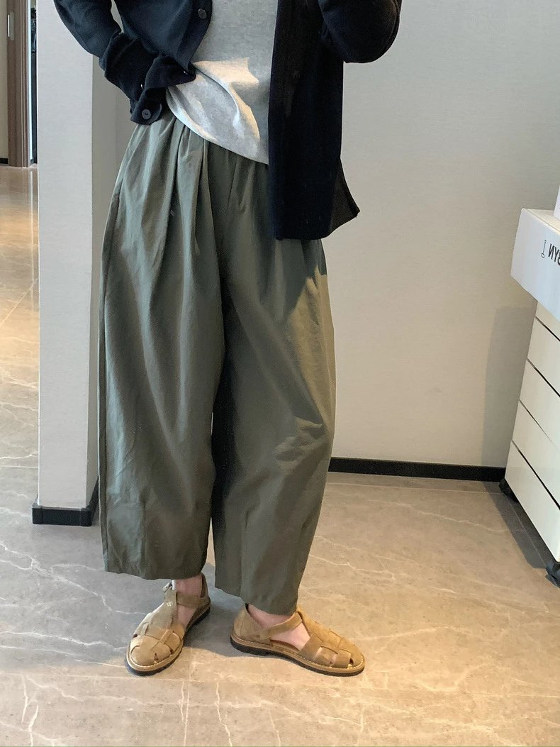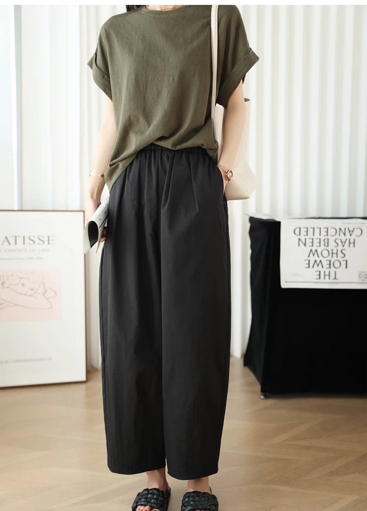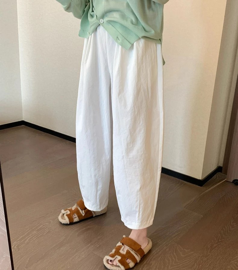 超态棉气球裤 一款舒适的日杂风休闲裤版型 宽松的建筑弧形,上身JI具风格 大裤筒让氛围更松弛一些,髙腰品质松紧 完全不会勒肚子 上身舒服的同时多些洒脱率性 超态棉系列触感天然 轻盈舒适 不易皱 免熨烫 好打理 前片又抽褶+打褶设计 增加裤筒余量,能很好的修饰腿形优化腿部 胖瘦皆宜 ,特别是对大腿偏粗的姐妹都 立体的裤型显高显瘦,轻松穿出造型感 与身材焦虑说BYE BYE~ 针织/短袖/长袖/衬衫,各种穿搭都适合 一溜顺滑套上就能出门的时髦 松紧高腰的设计,穿脱方便自如 还减少了对身体的限制 ,对身材包容度高