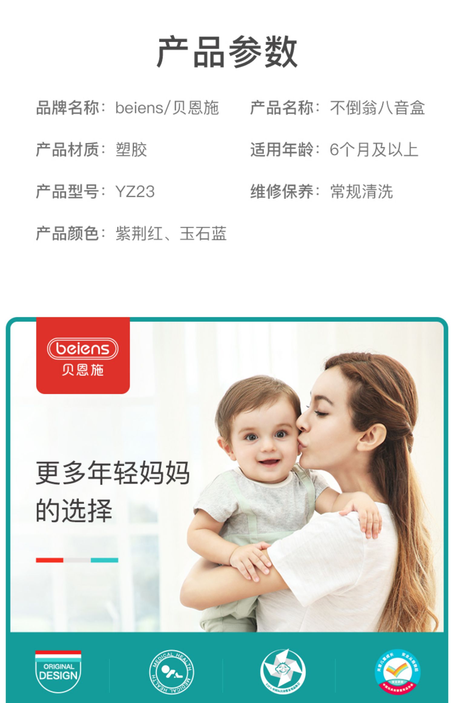 贝恩施不倒翁玩具宝宝益智点头娃娃3-6个月婴儿大号音乐早教0-1岁