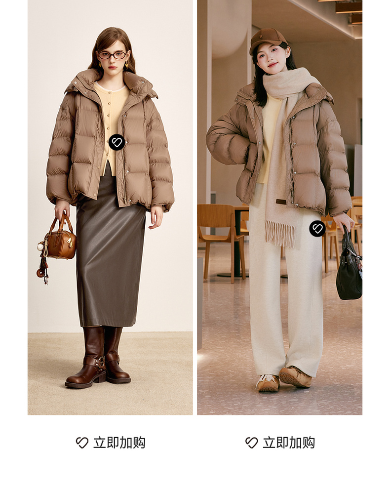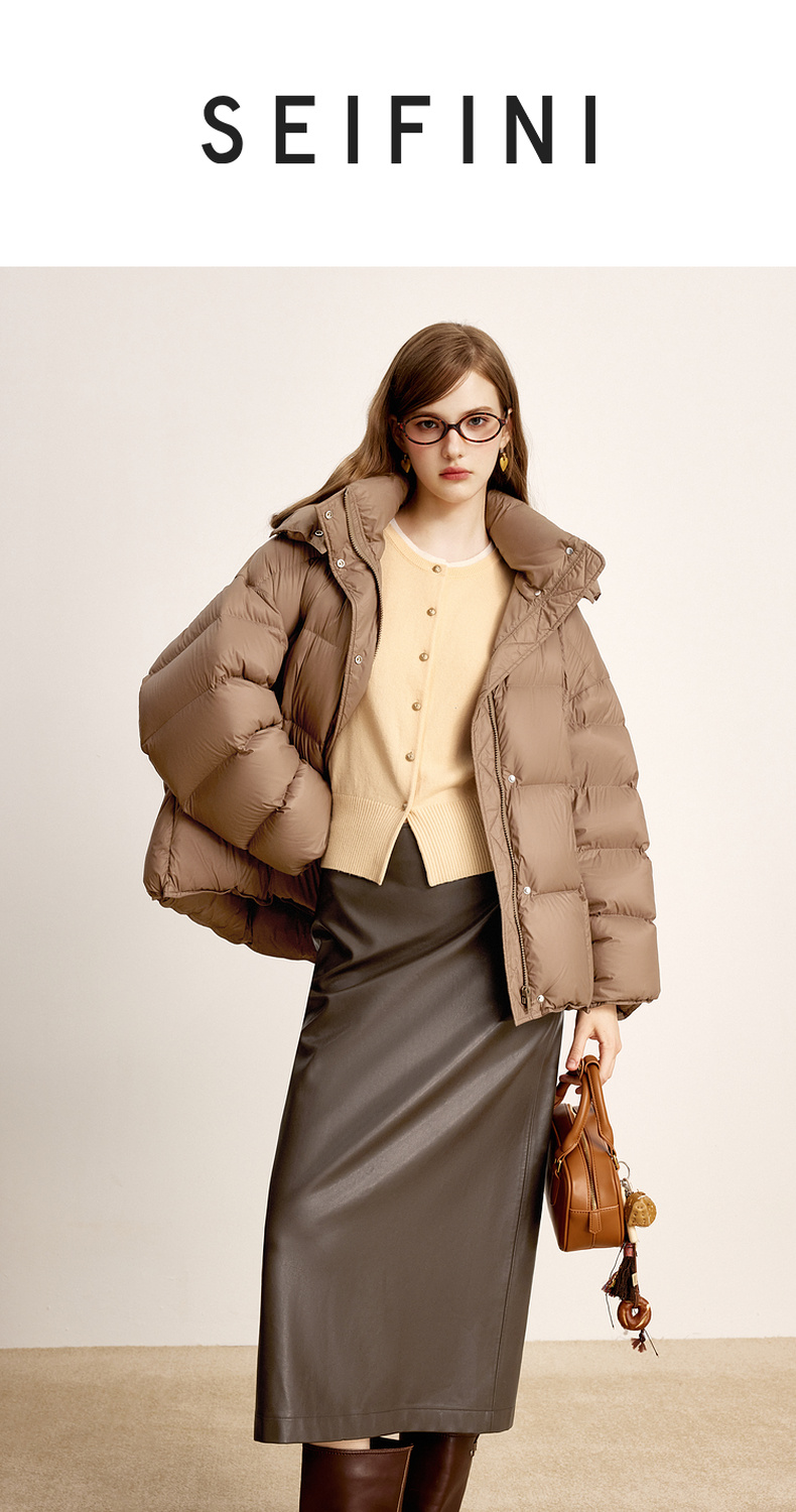 【商场同款】诗凡黎可拆卸帽领鸭绒羽绒服2024冬新款女3FA480071R