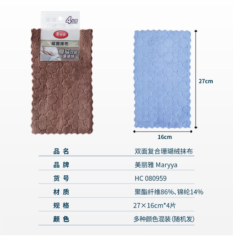 【批发】美丽雅去油易洗神奇抹布双层双面加厚款颜色随机 4张/包