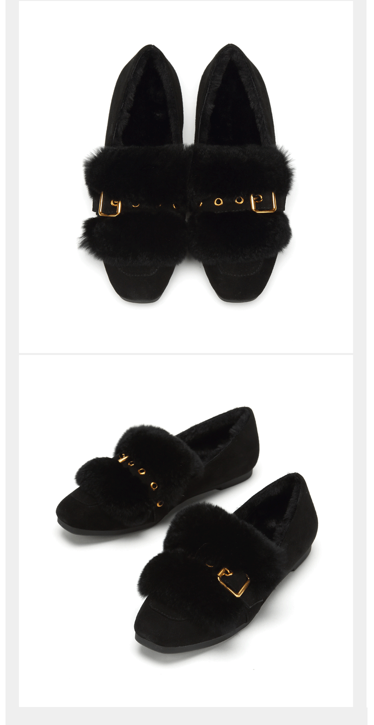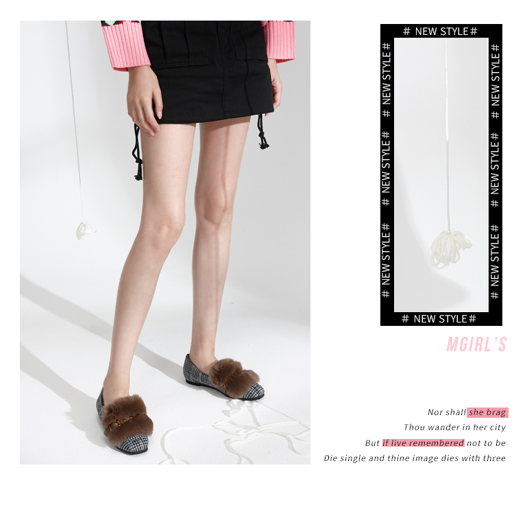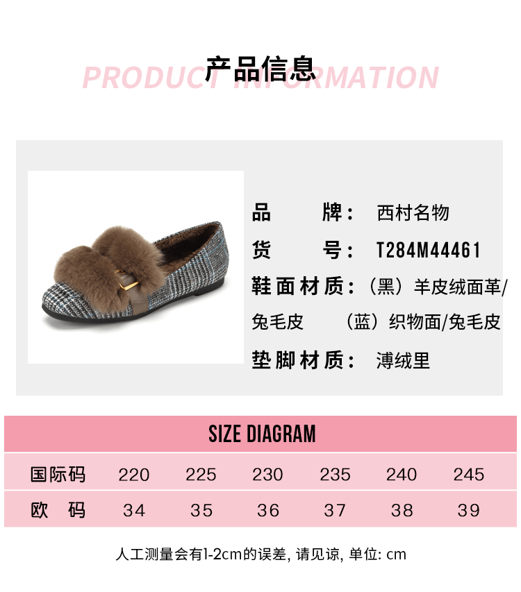 西村名物商场同款毛毛鞋女冬季新款复古格子单鞋加绒保暖鞋T284M44461