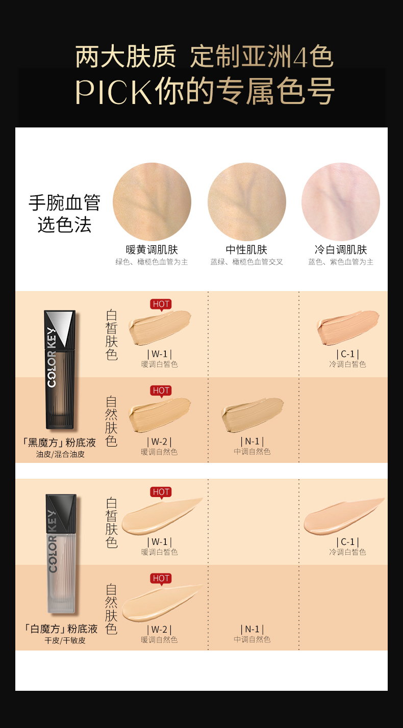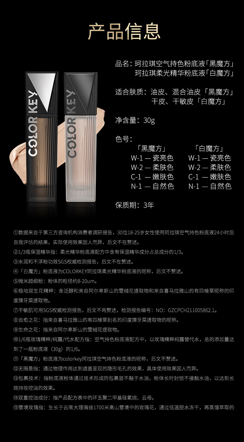 珂拉琪柔光精华粉底液 W-1瓷亮色30g 干皮水润轻薄持久控油遮瑕细腻奶油肌服帖不易脱妆