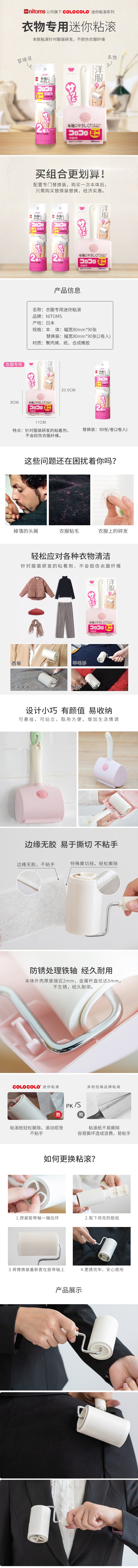 Nitoms衣服专用粘滚日本进口迷你清洁除尘器粘毛滚刷不伤纤维除尘 WHJC
