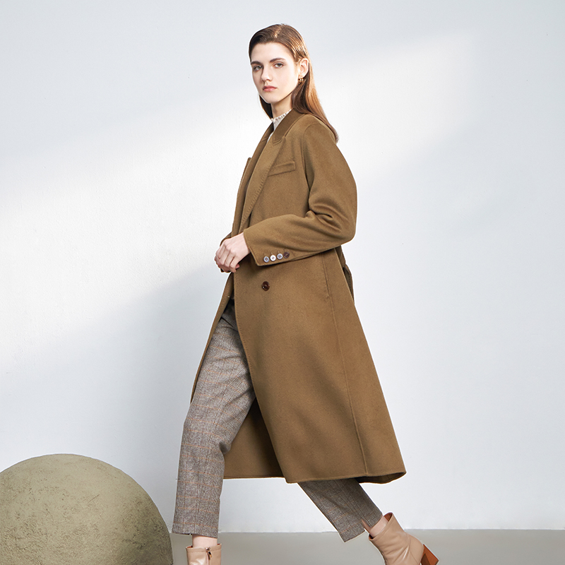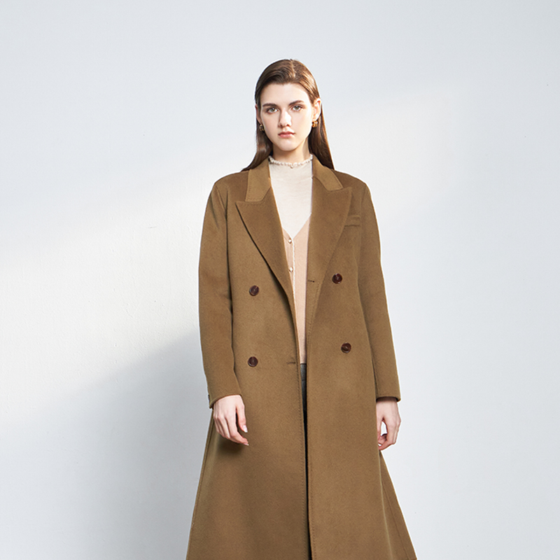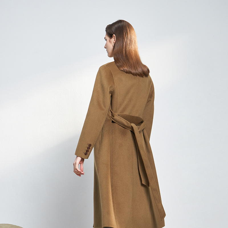 【双排扣中长款羊毛大衣】22年秋冬新品纯色简约毛呢外套系带收腰毛呢大衣