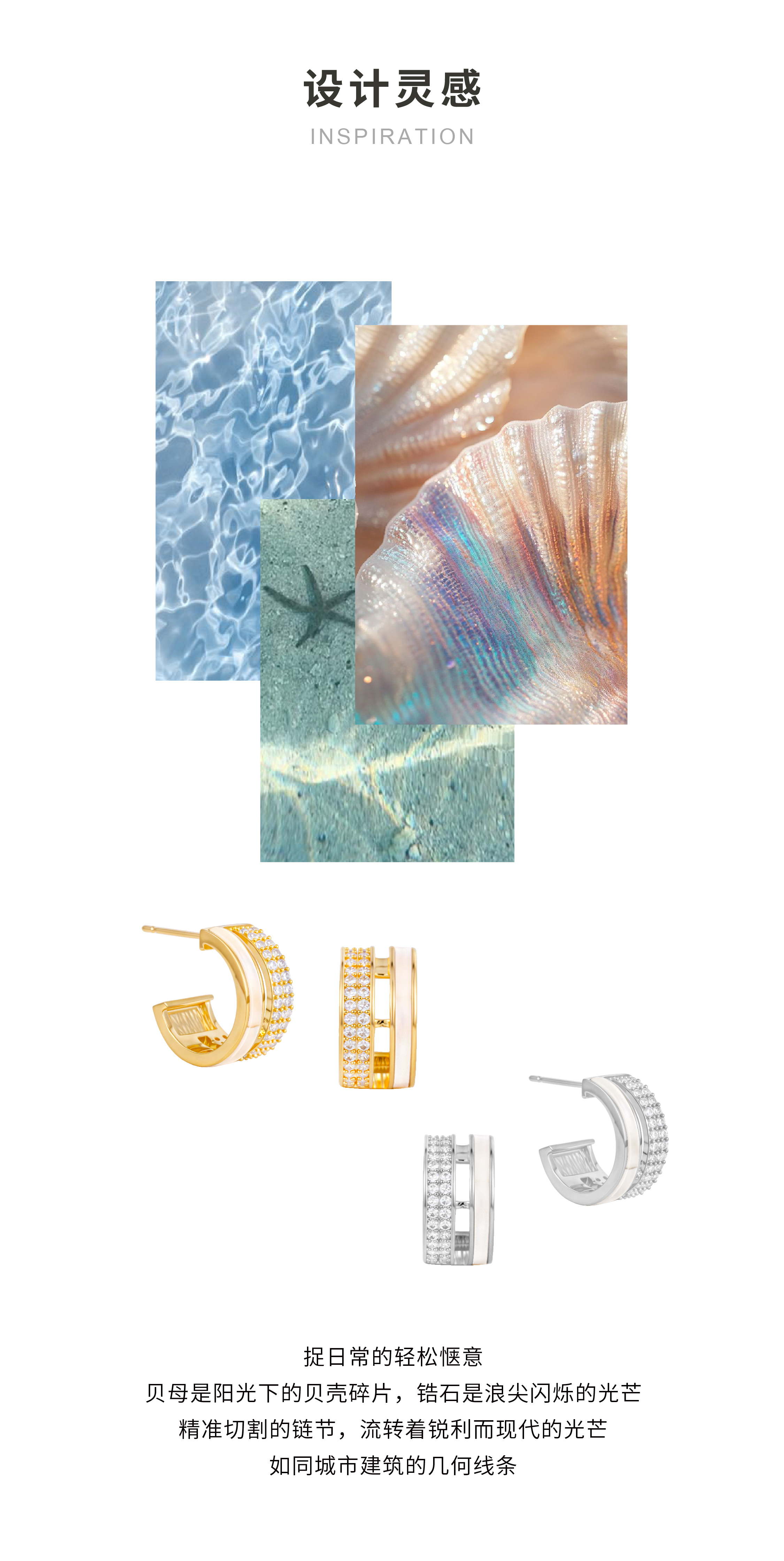 『夏日月』极简几何贝母耳环