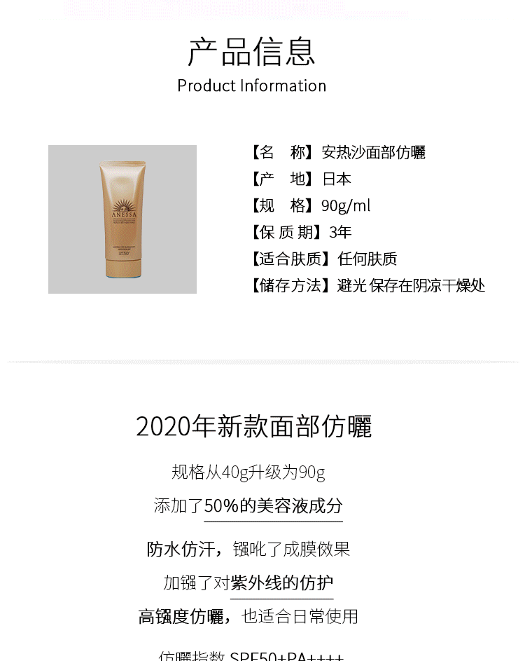 资生堂安耐晒金管面部专用防晒90ml2024新版