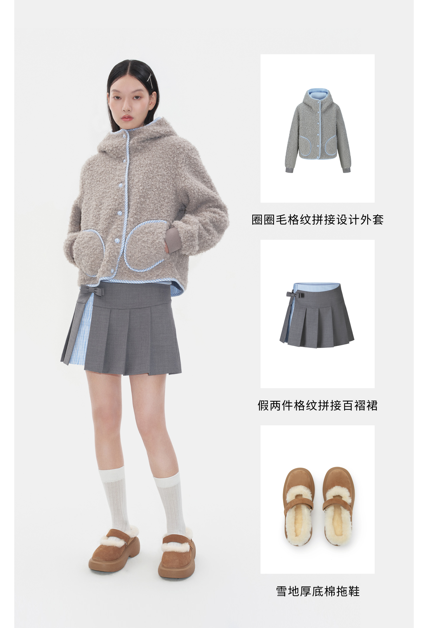 Herlian2025年秋季新品女士假两件格纹拼接不对称设计百褶裙