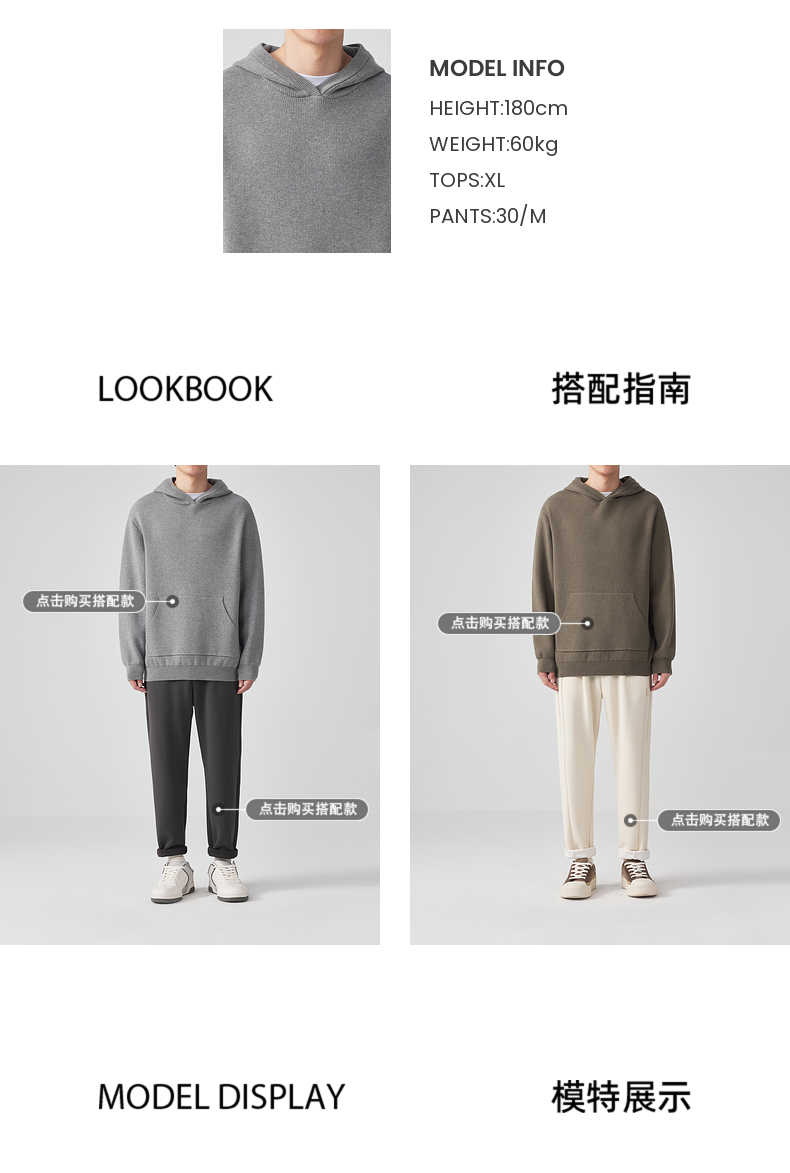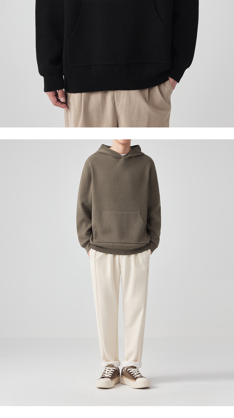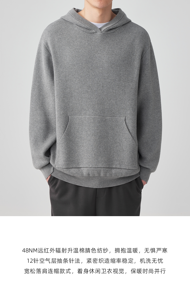 墨麦客男装 连帽针织衫男士秋季新款宽松休闲升温套头卫衣男20519