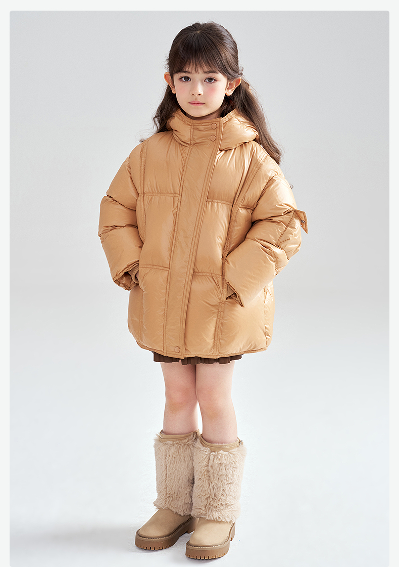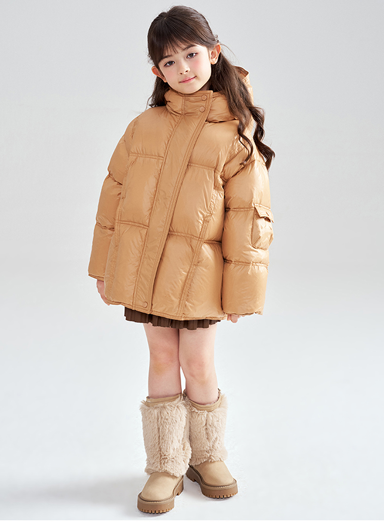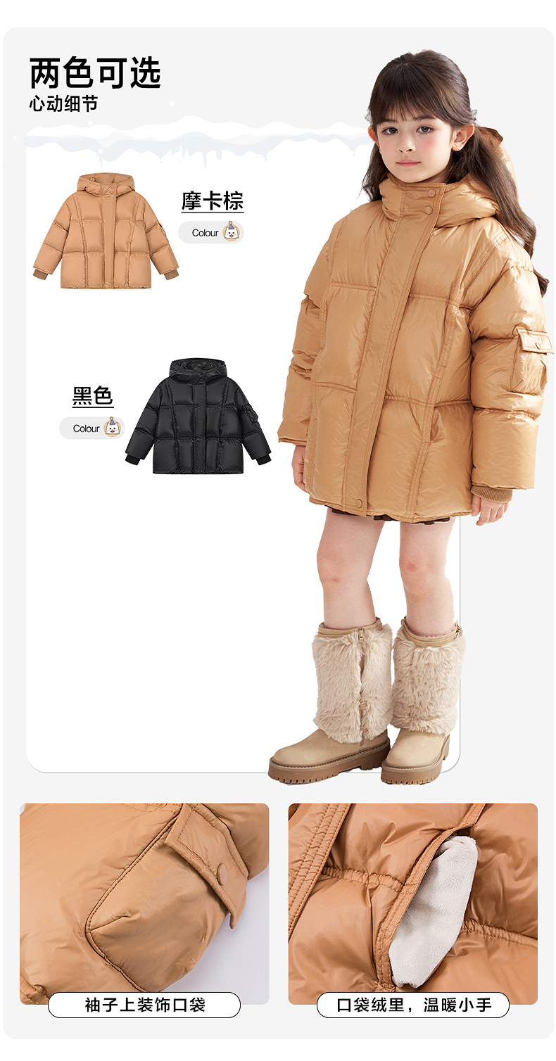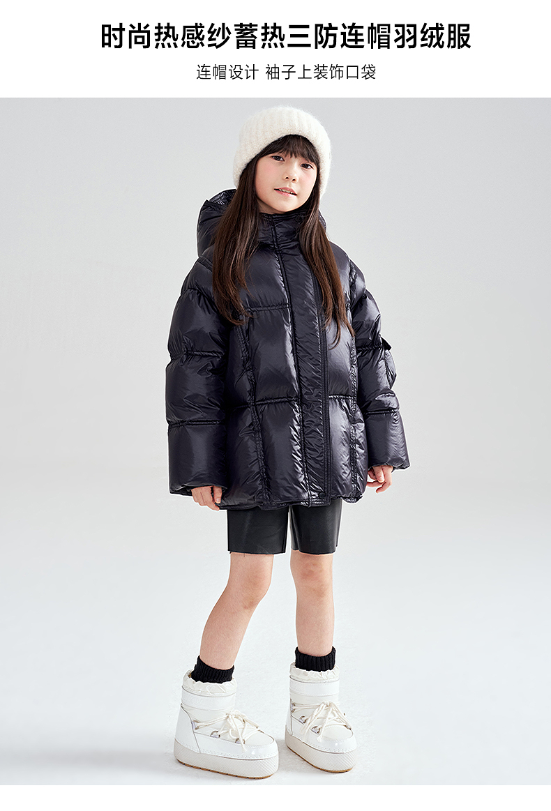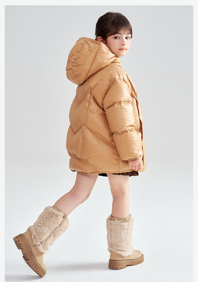 笛莎Deesha 2025冬季女童时尚热感纱蓄热三防连帽羽绒服