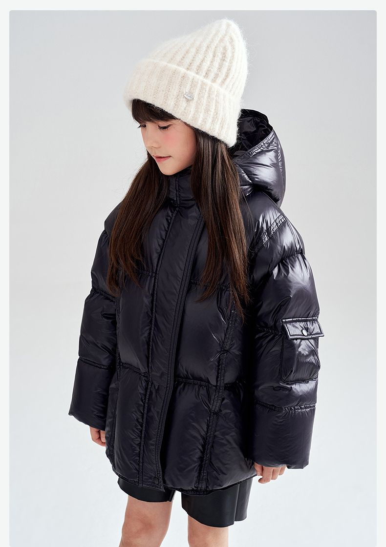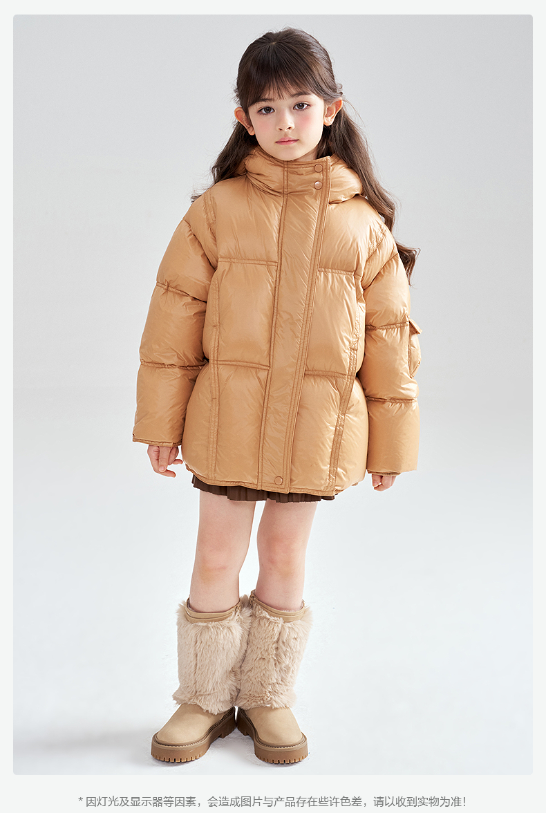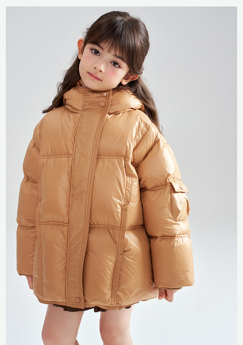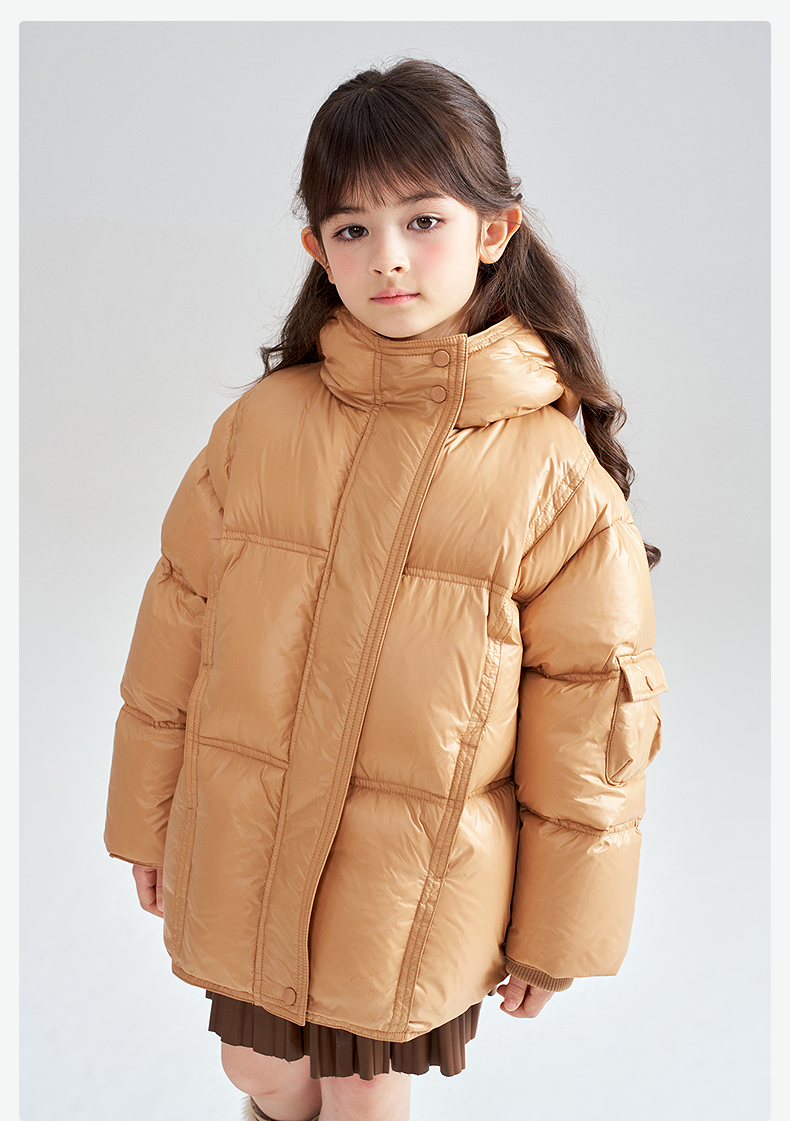 笛莎Deesha 2025冬季女童时尚热感纱蓄热三防连帽羽绒服