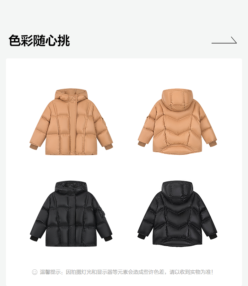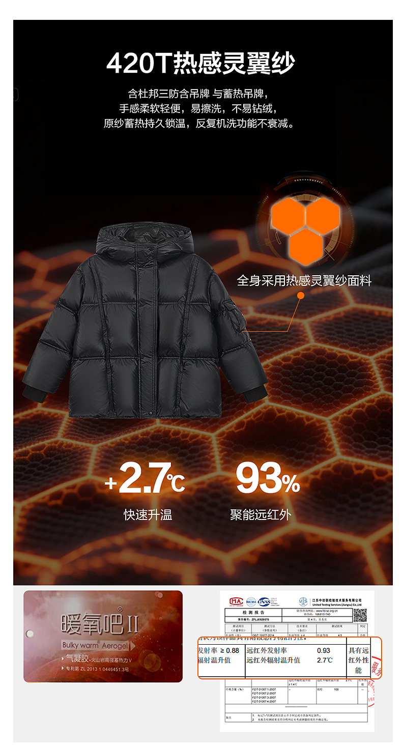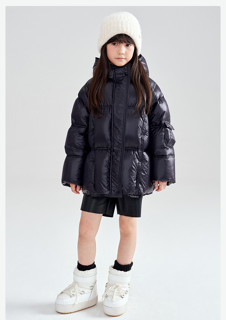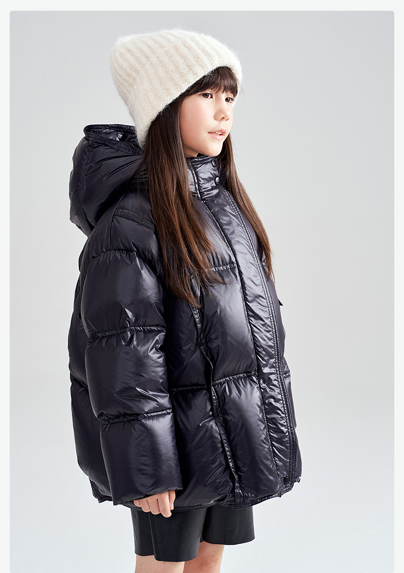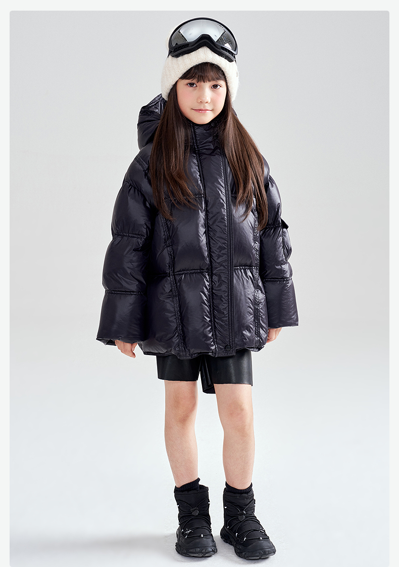 笛莎Deesha 2025冬季女童时尚热感纱蓄热三防连帽羽绒服