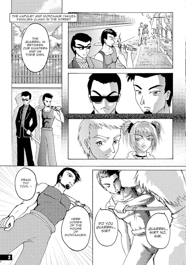 Shakespeare's famous tragedy unfurls in front of a dramatic manga setting, in which the fair city of Verona becomes a street in the highly fashionable Shibuya district of Tokyo. The swordfights become duals with katanas; the Capulets and the Montagues, opposing Yakuza families. Conflict explodes when Romeo - a bleached-blonde, well-dressed rock star - falls in love with Juliet, the pure and innocent Capulet daughter.