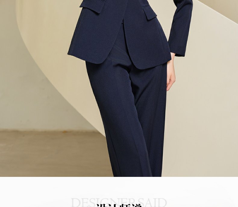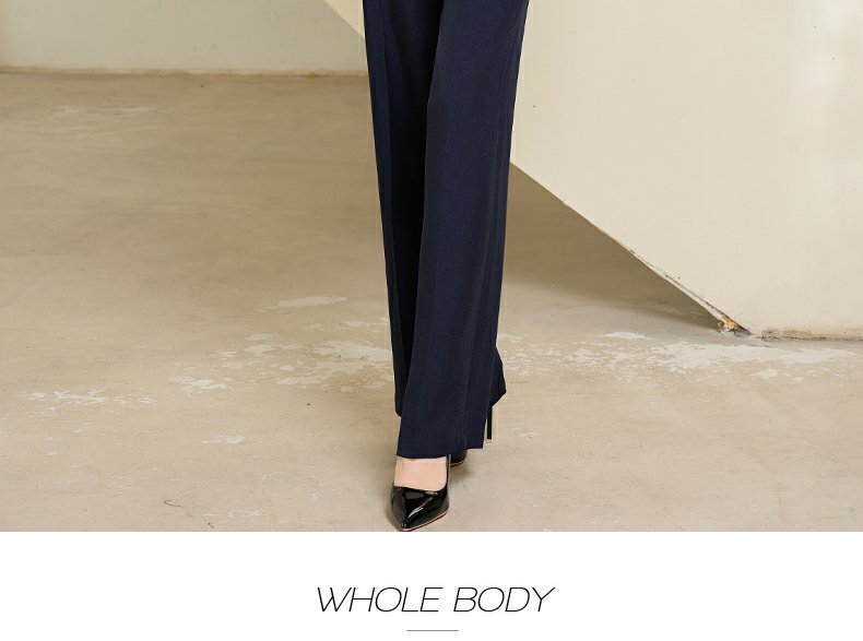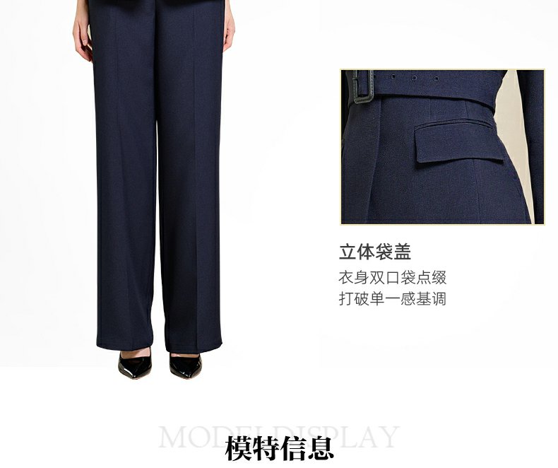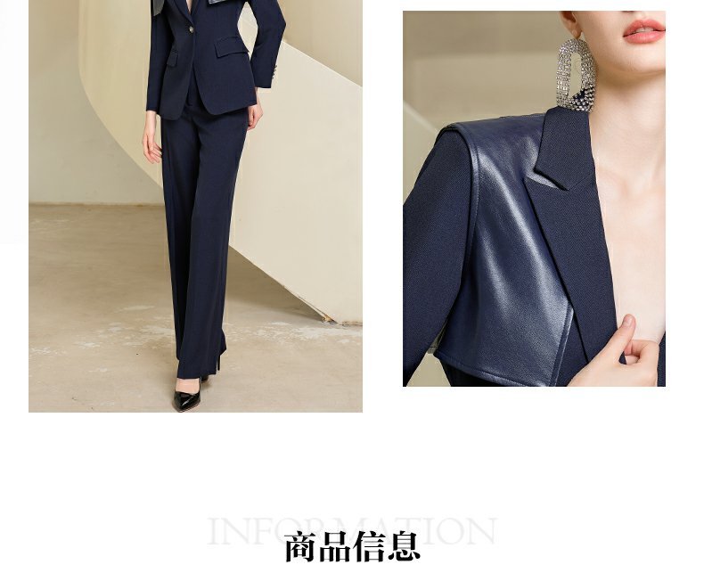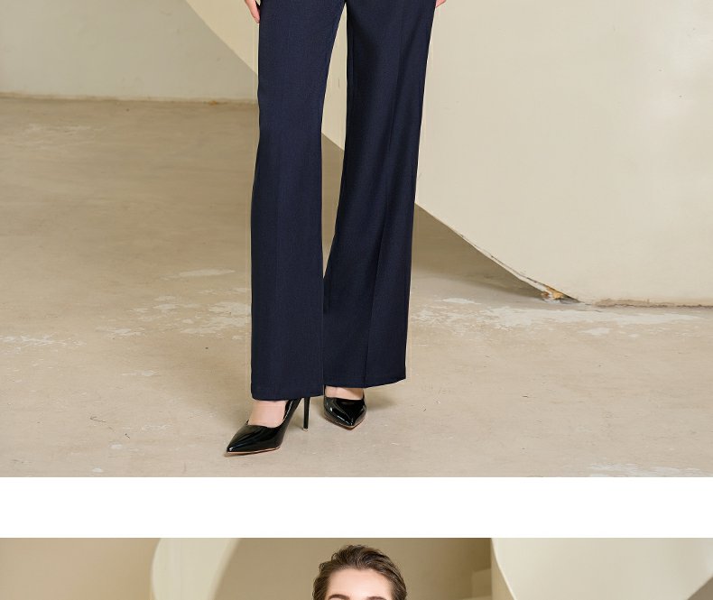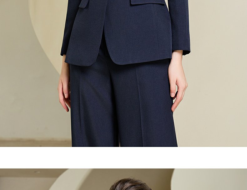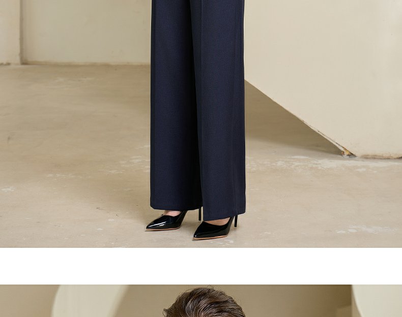 IWY/藏青色西装微喇直筒裤套装女休闲正装演讲主持人职业装233035C1+P6