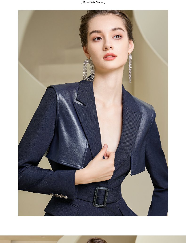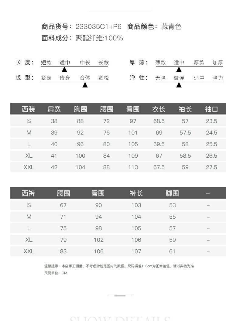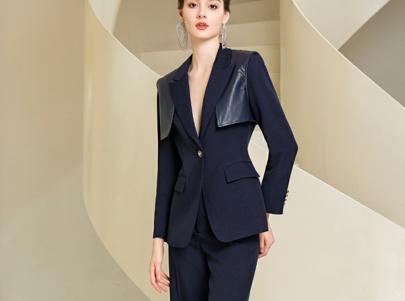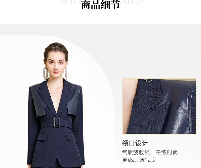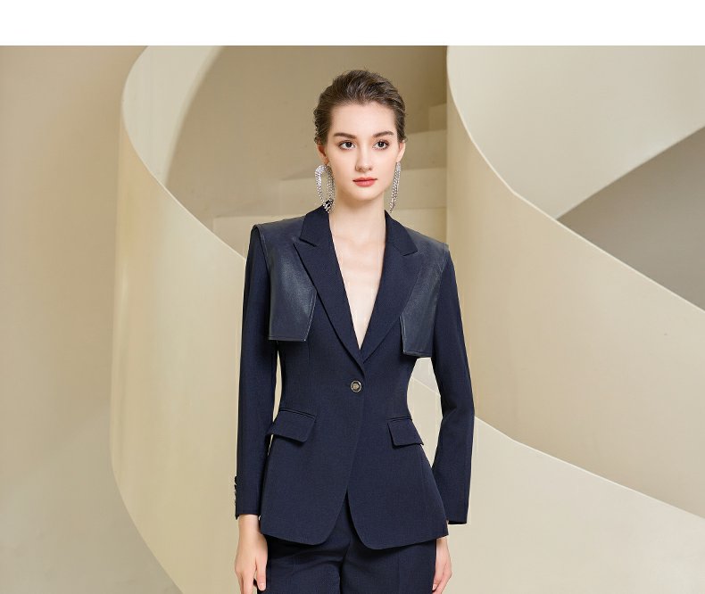 IWY/藏青色西装微喇直筒裤套装女休闲正装演讲主持人职业装233035C1+P6