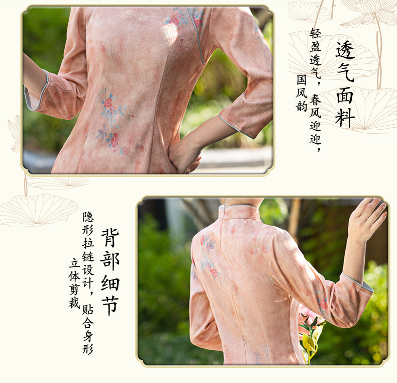 圆襟印花长款,新中式修身旗袍SJT- 699