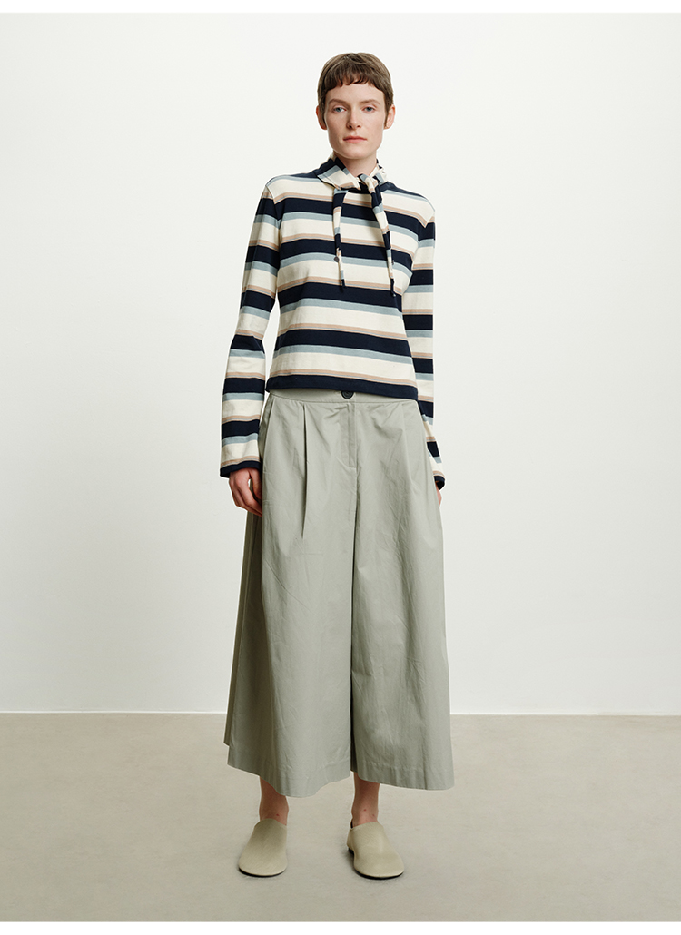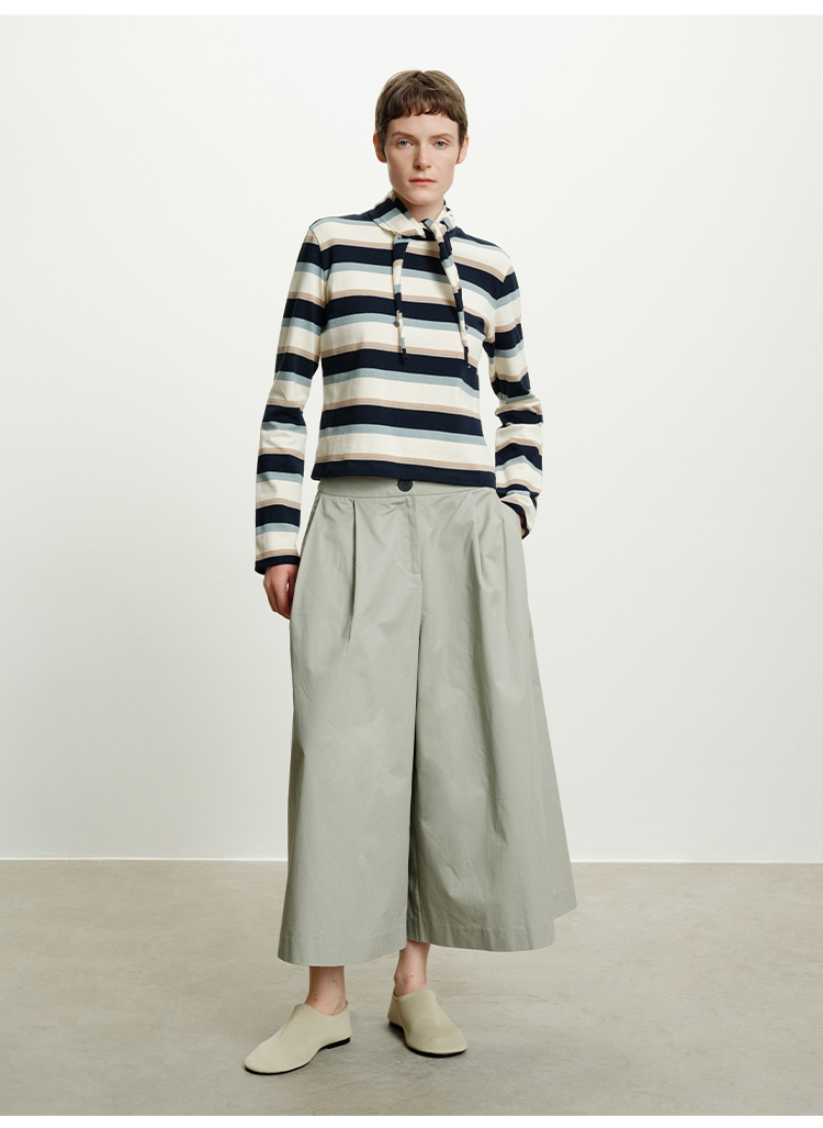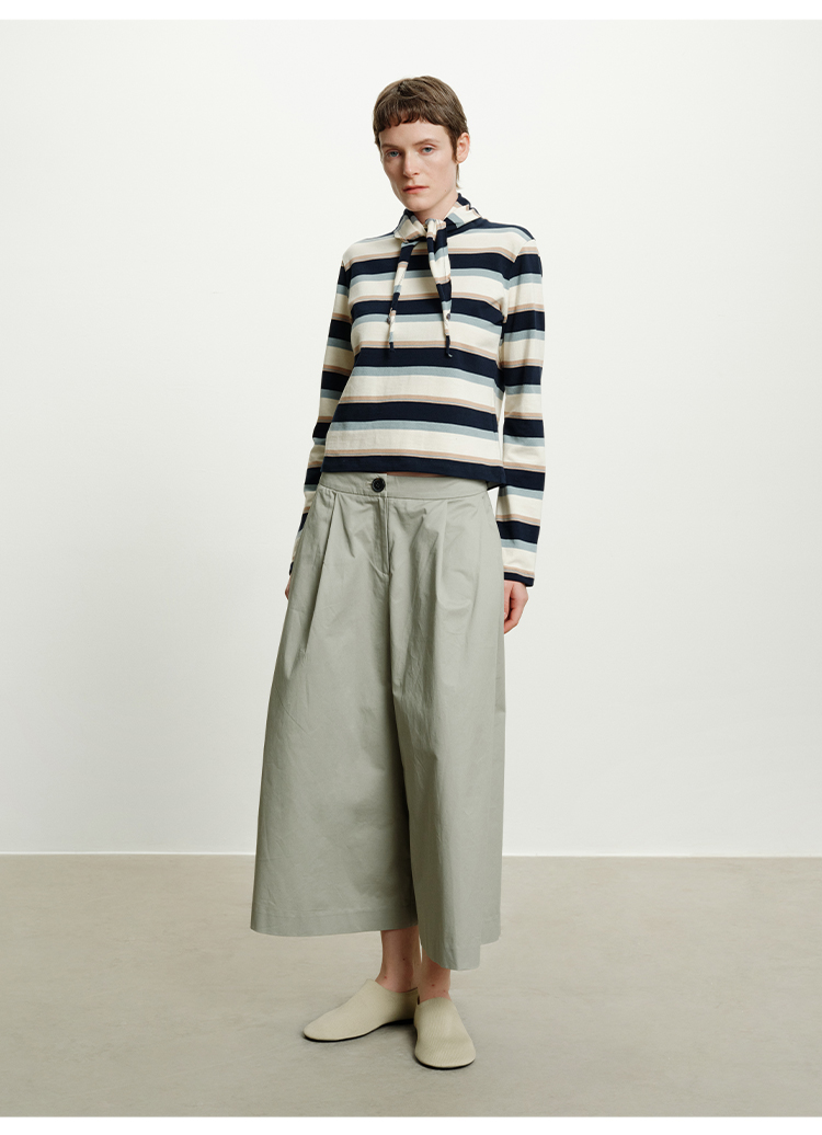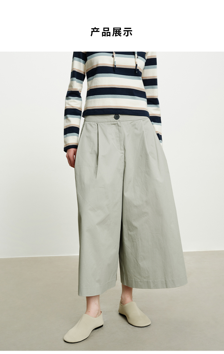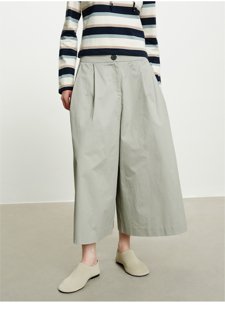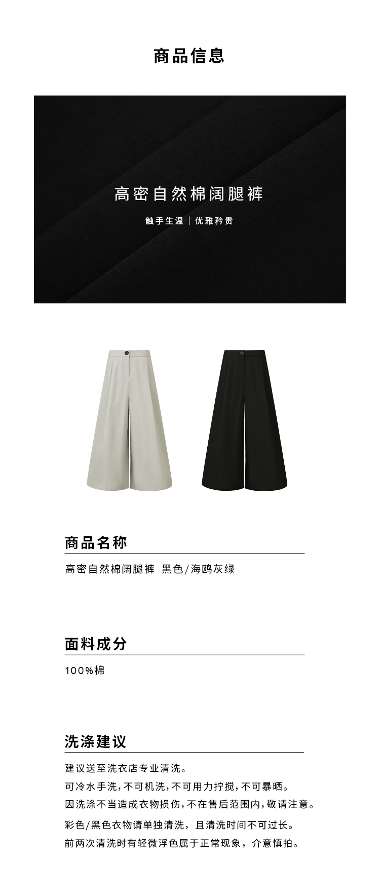 HIDEMI 高密自然棉阔腿裤 黑色/海鸥灰绿