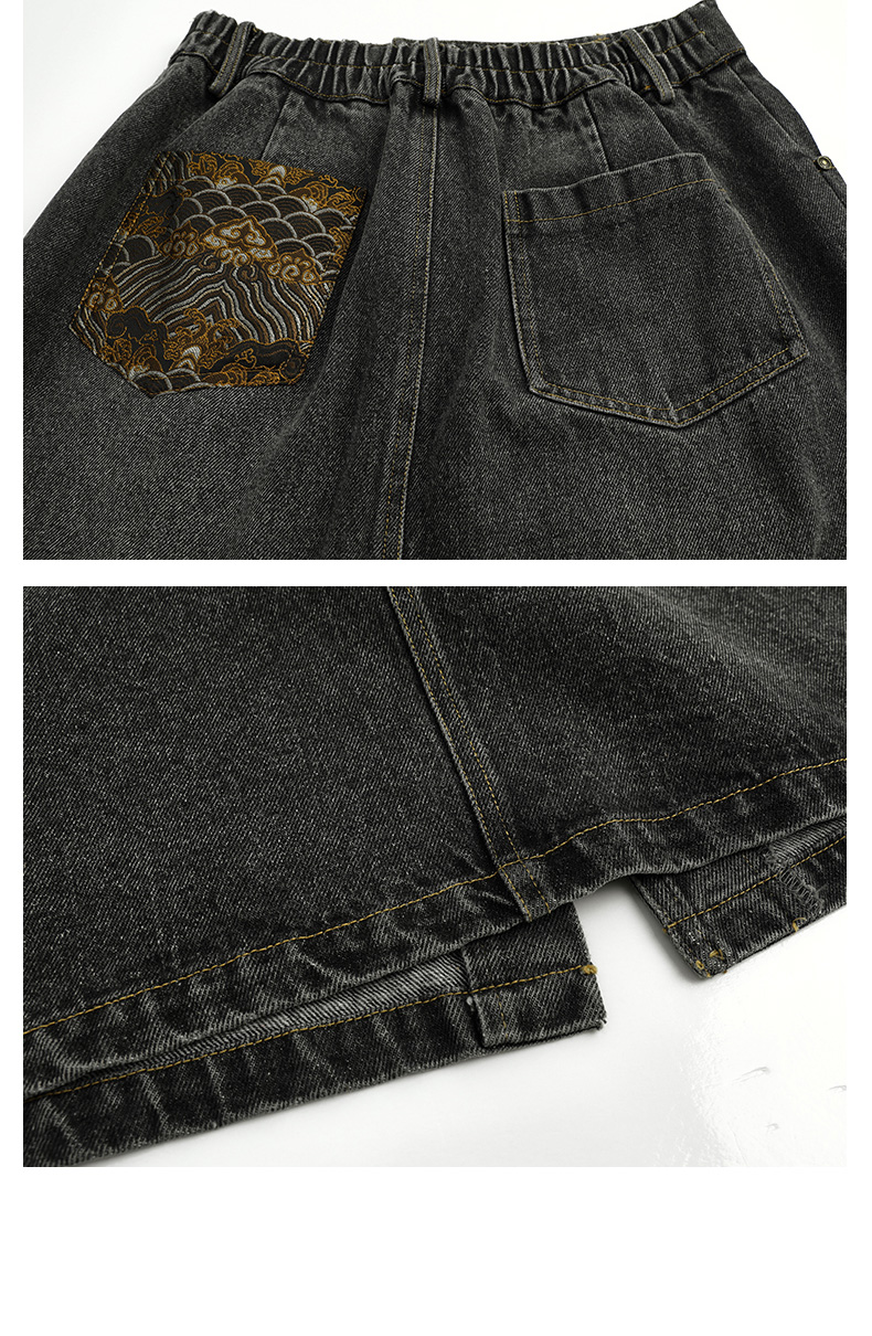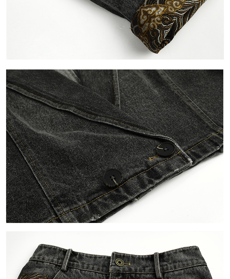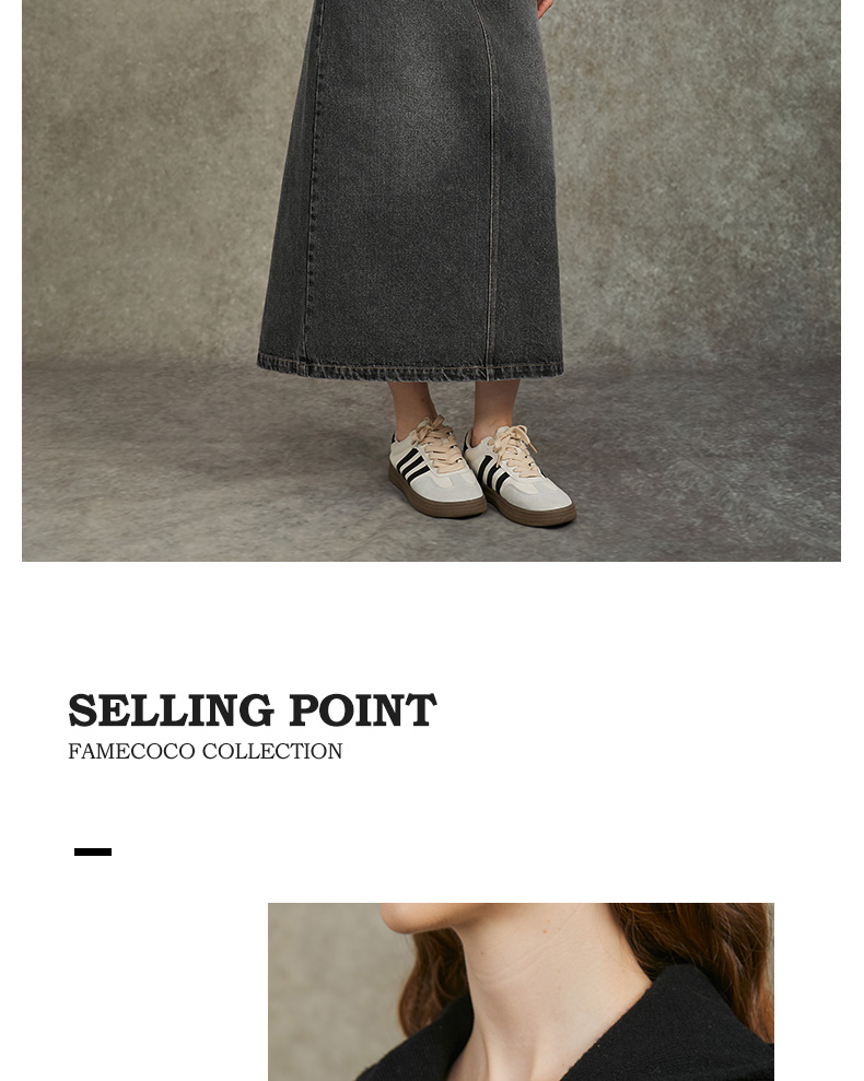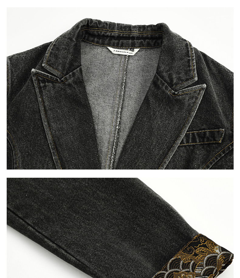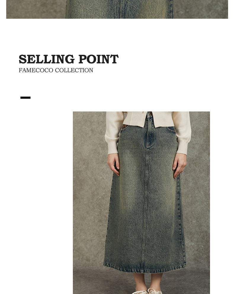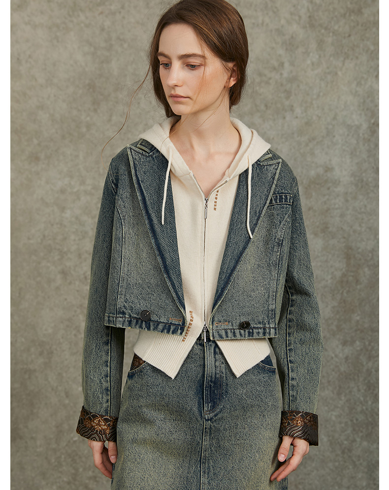 Famecoco范可儿复古牛仔套装V领短外套A字裙两件套FAC6EA003