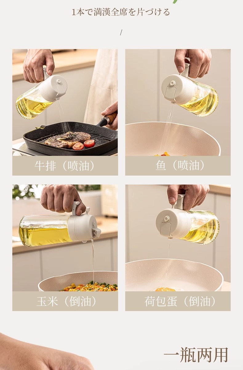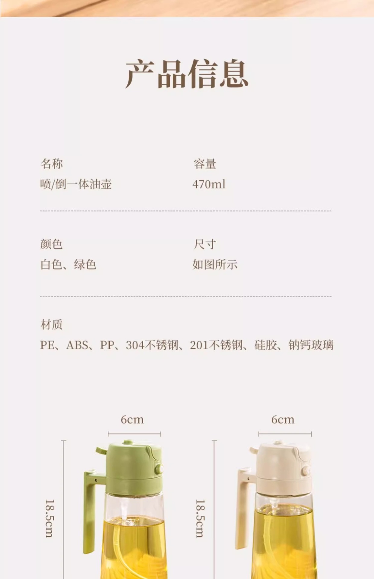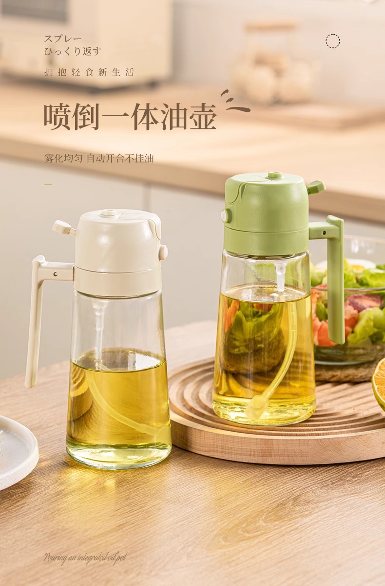 【均匀雾化❗不挂油不滴油】油壶喷倒两用喷油壶厨房喷油瓶雾化家用玻璃按压式油喷壶一体油瓶。xa
