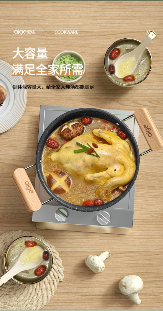 【品名】马伊利代言!爱格麦饭石不粘汤锅!煎炸炖煮一锅多用
