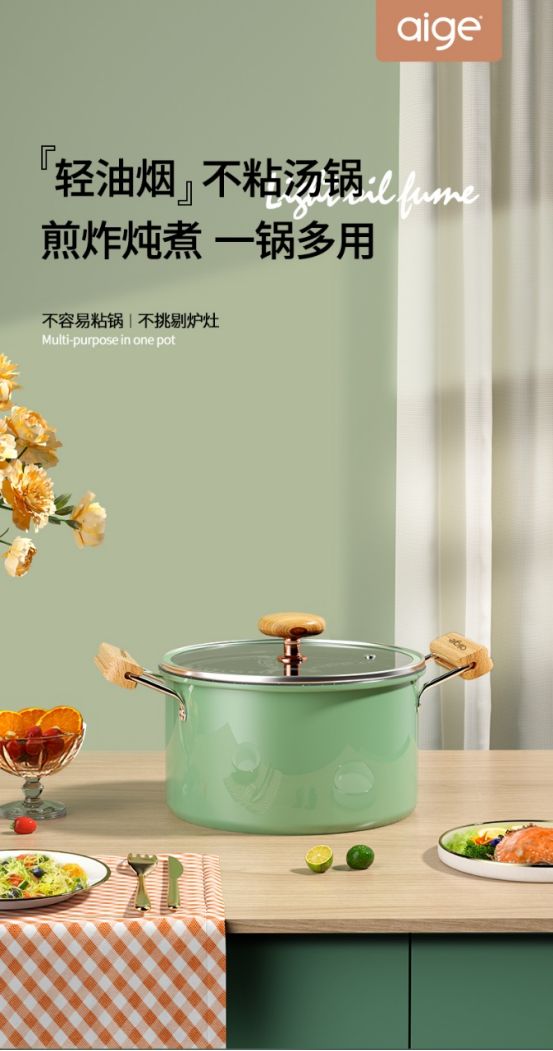 爱格小汤锅 单层蒸汽铁锅 小型汤锅不粘汤锅 煎炸炖煮一锅多用