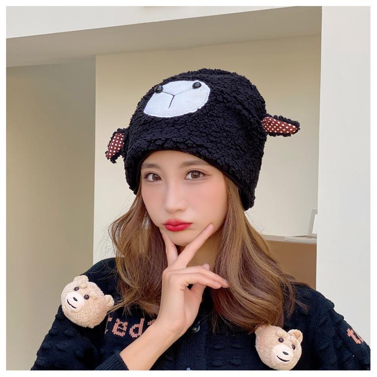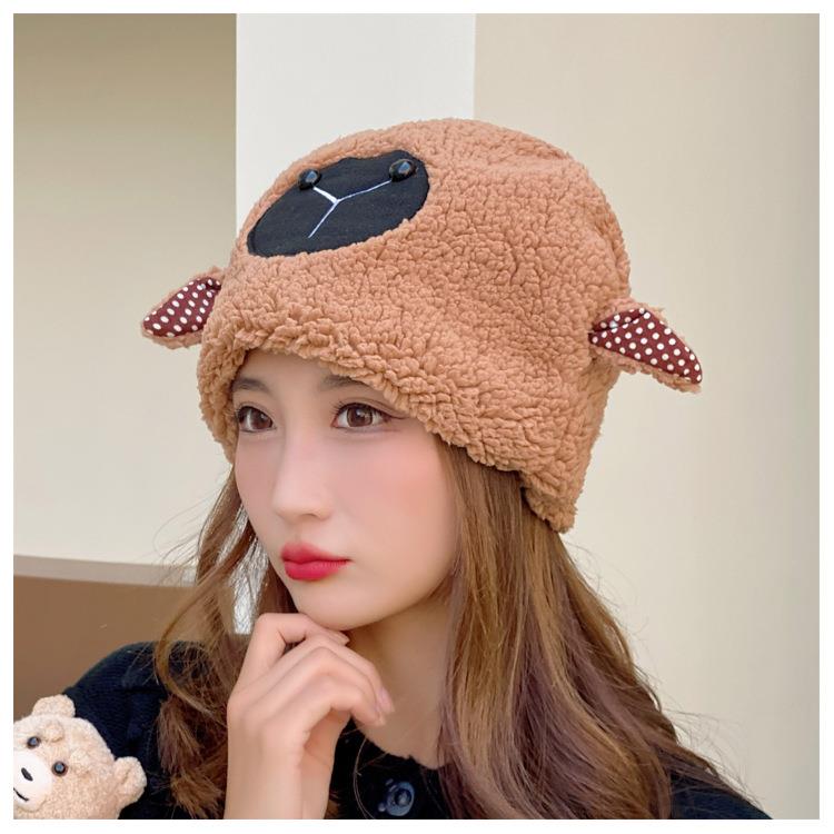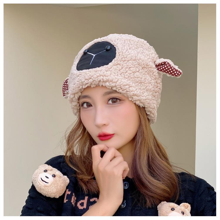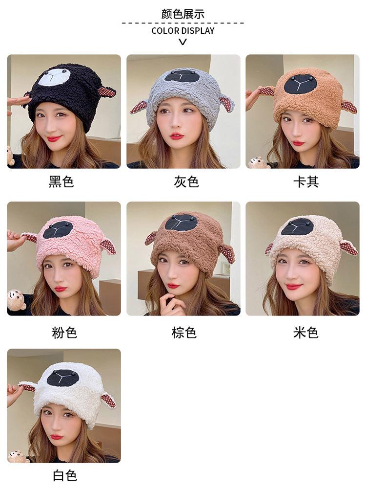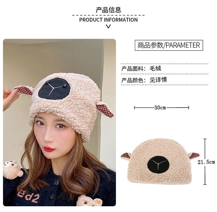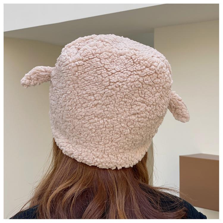冬季日系卡通甜美可爱耳朵帽子女小绵羊毛绒加厚帽抖音代发套头帽