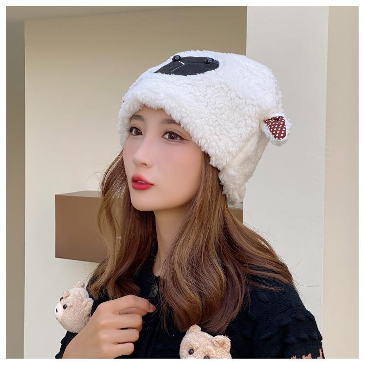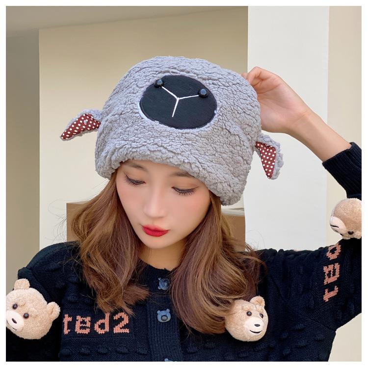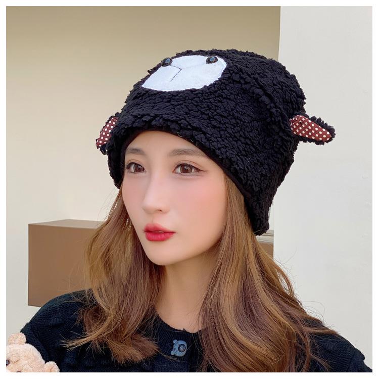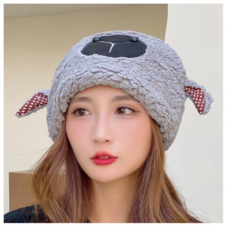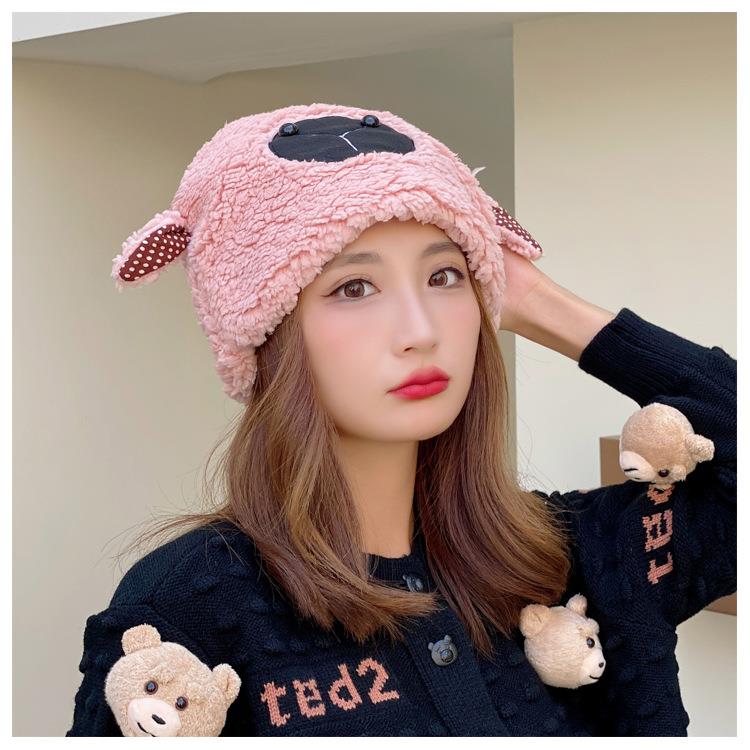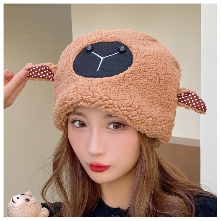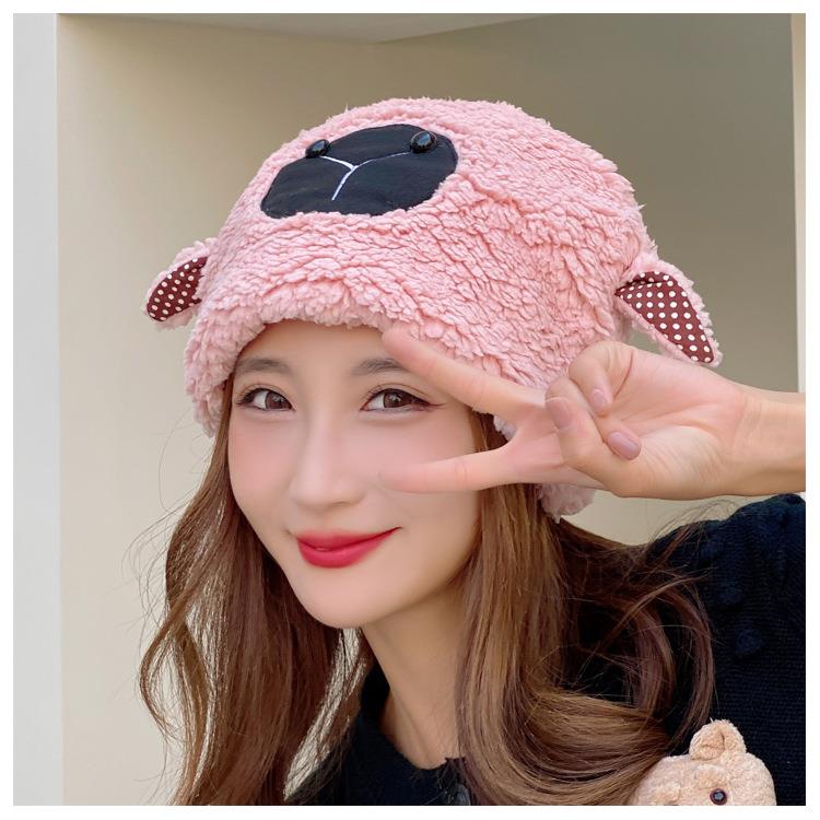 冬季日系卡通甜美可爱耳朵帽子女小绵羊毛绒加厚帽抖音代发套头帽