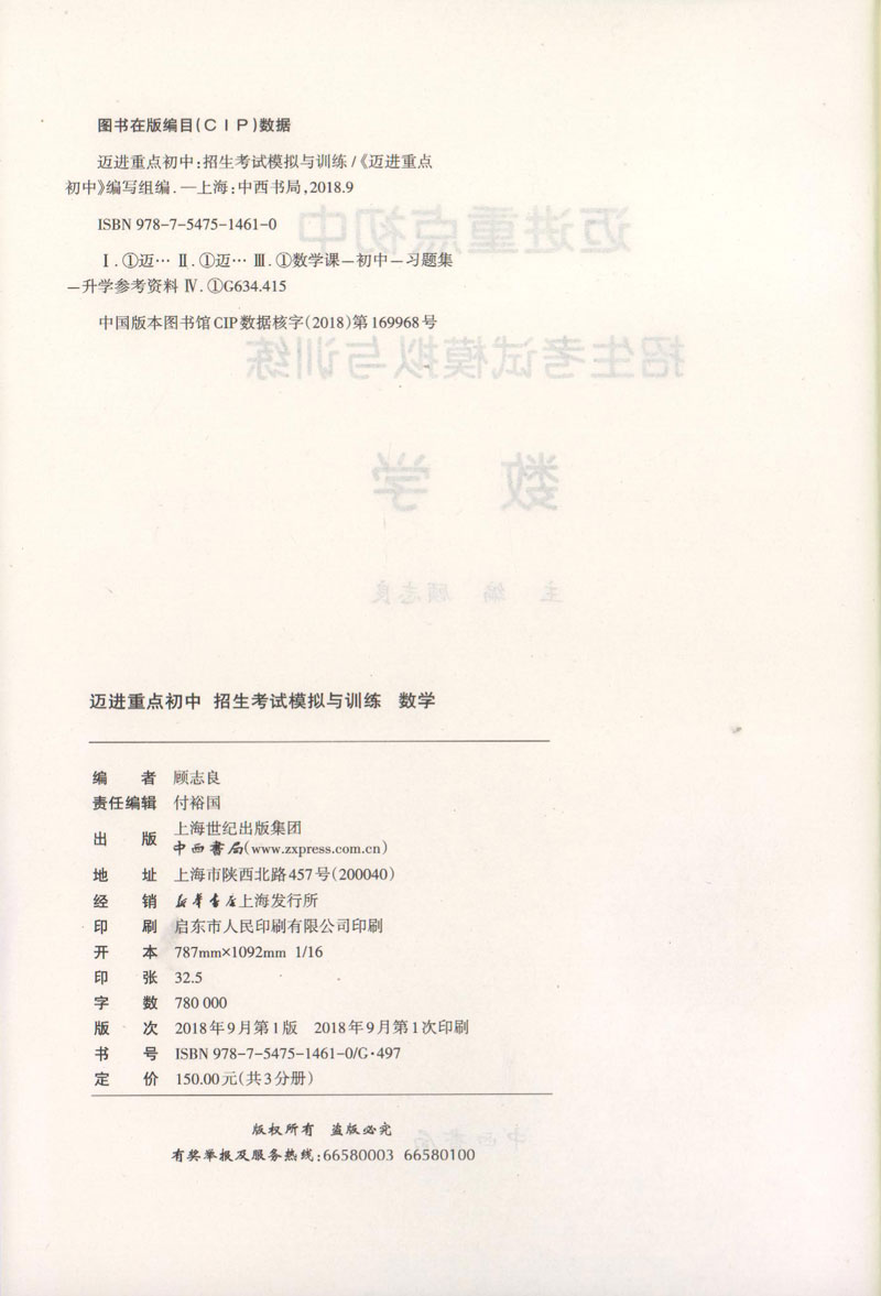 迈进重点初中招生考试模拟与训练 数学 上海小升初总复习 含答案 中西书局 上海初中入学招生考试辅导 走近名牌初中数学