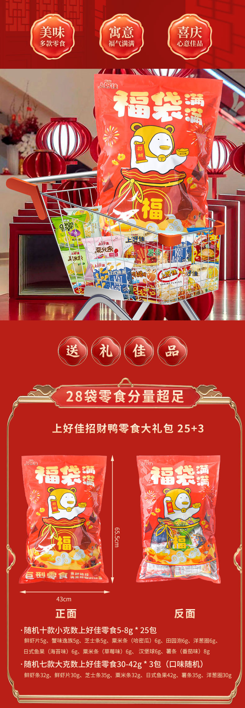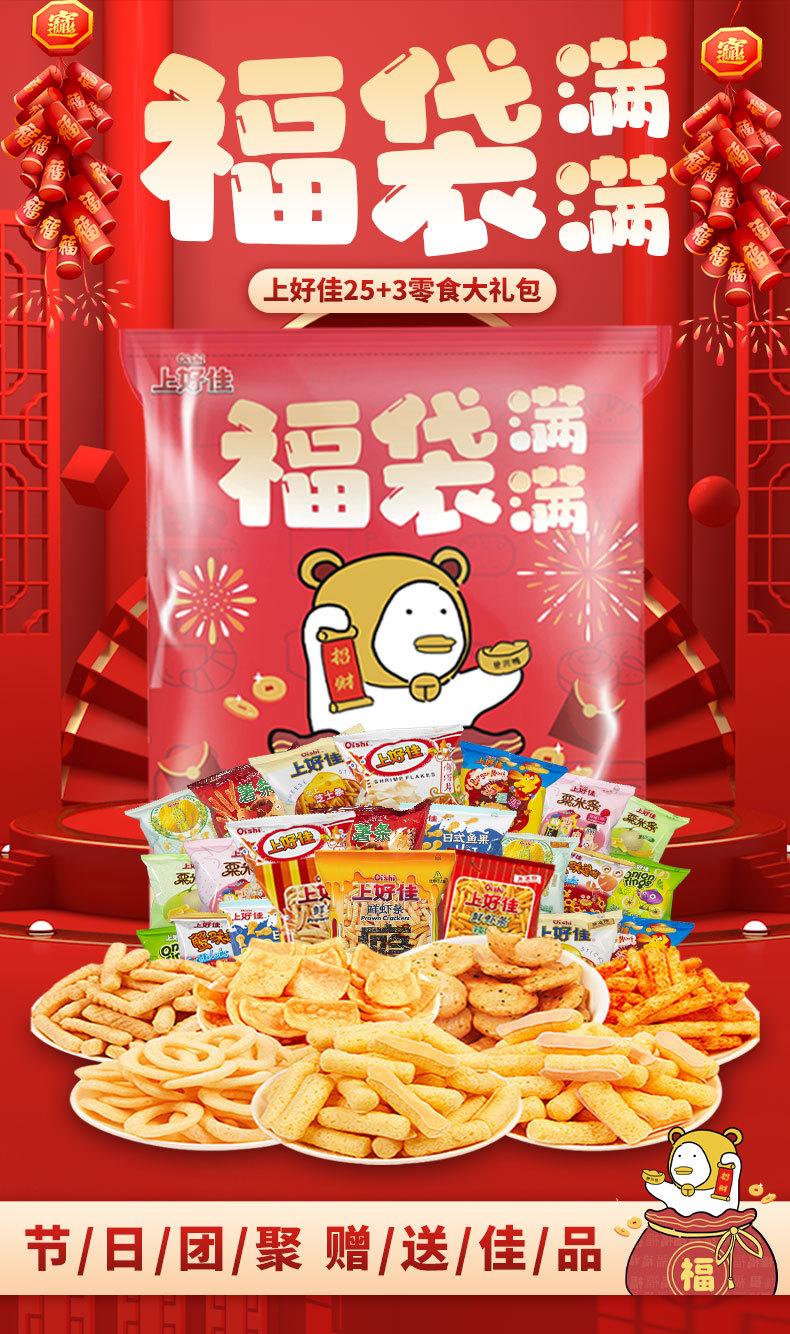 【福袋满满,上好佳25+3零食大礼包】分享装零食大礼包品类多样,美食年货休闲零食小食品福袋,节日团聚送礼佳品