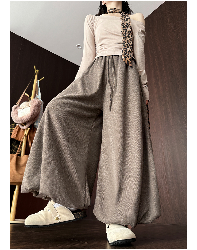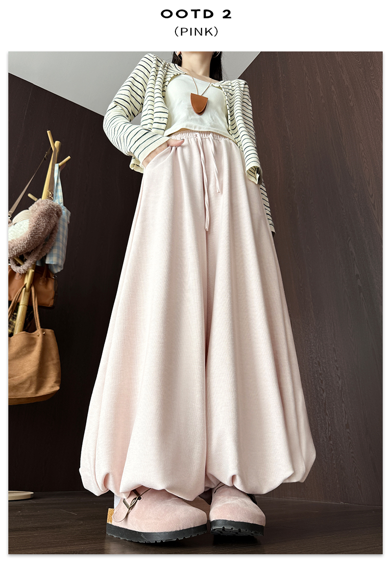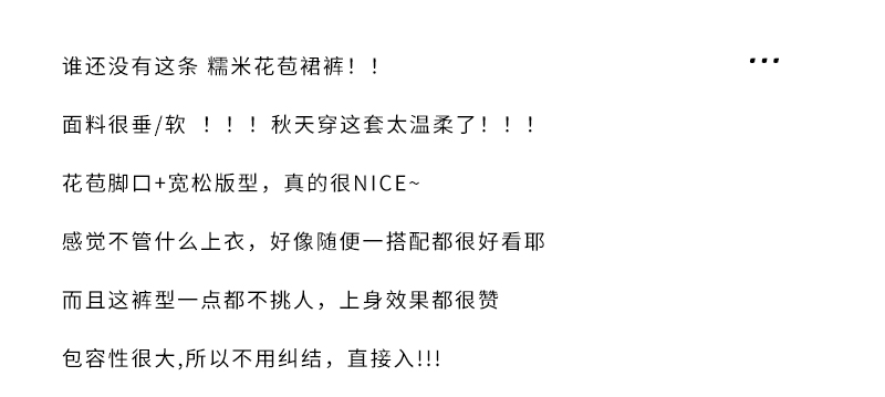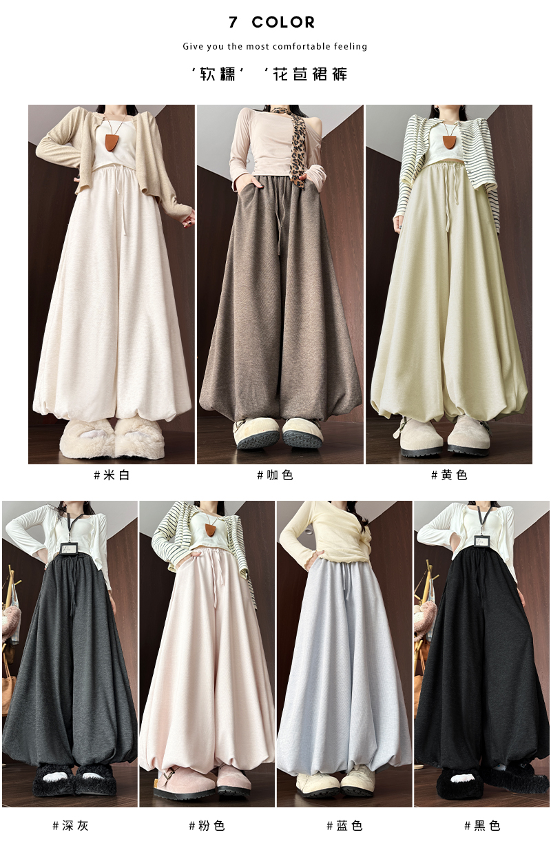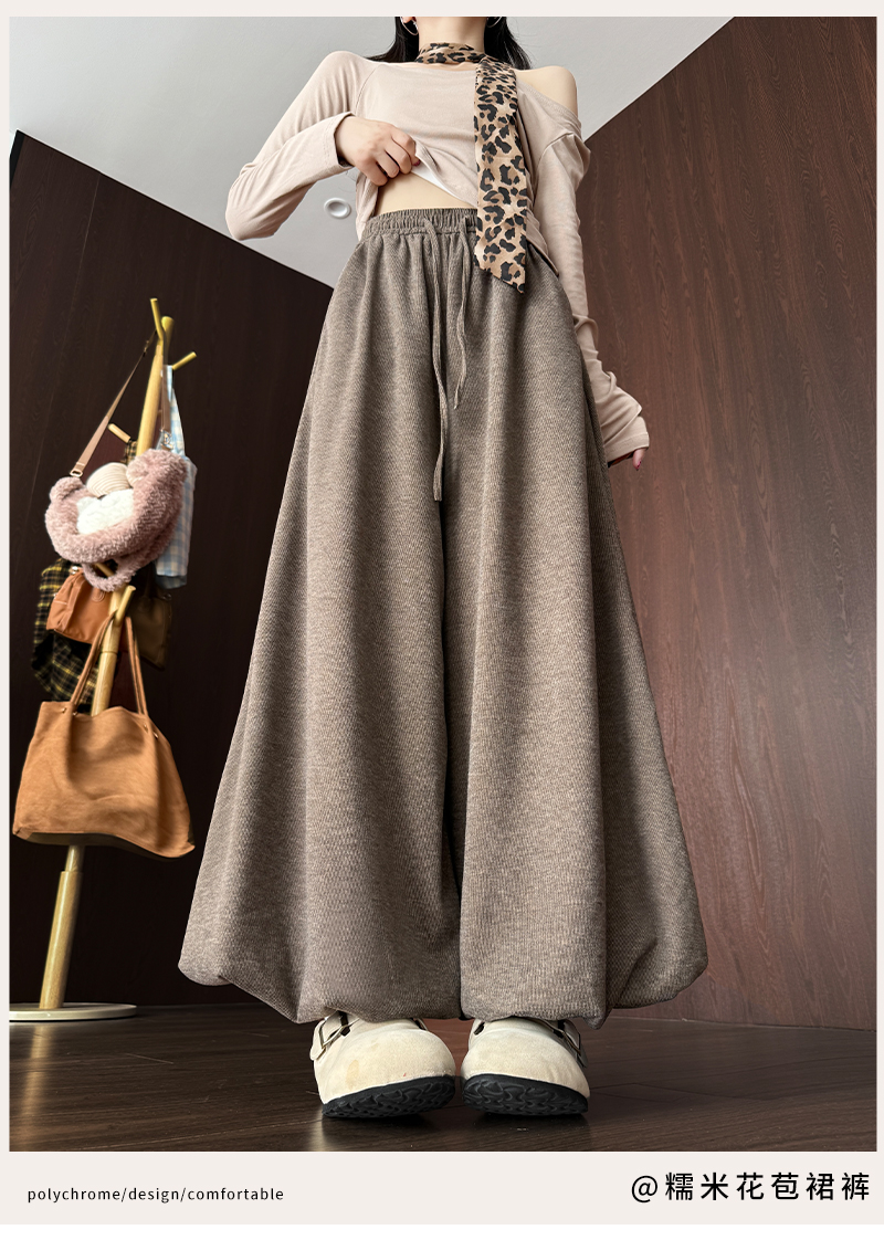 【YW】无忧购 温柔风糯米花苞裤裙女秋季高腰针织休闲灯笼裤裙H-1930(截单后3-5天发货)