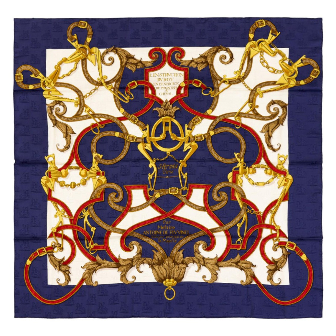 1993年法国爱马仕出品Henri d’Origny设计《国王的教诲》主题蓝色款丝绸方巾