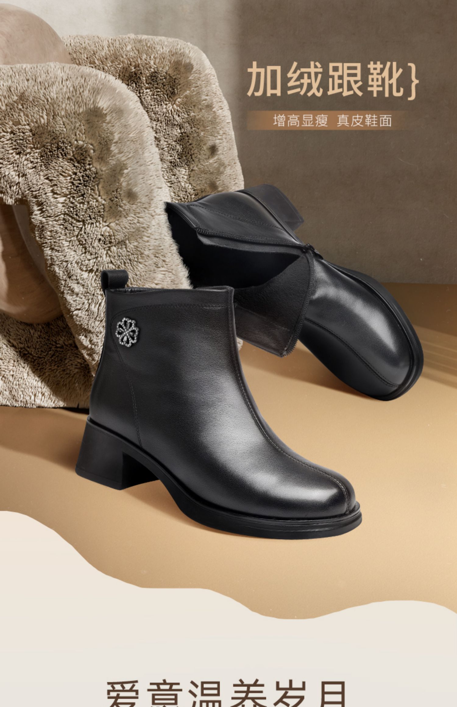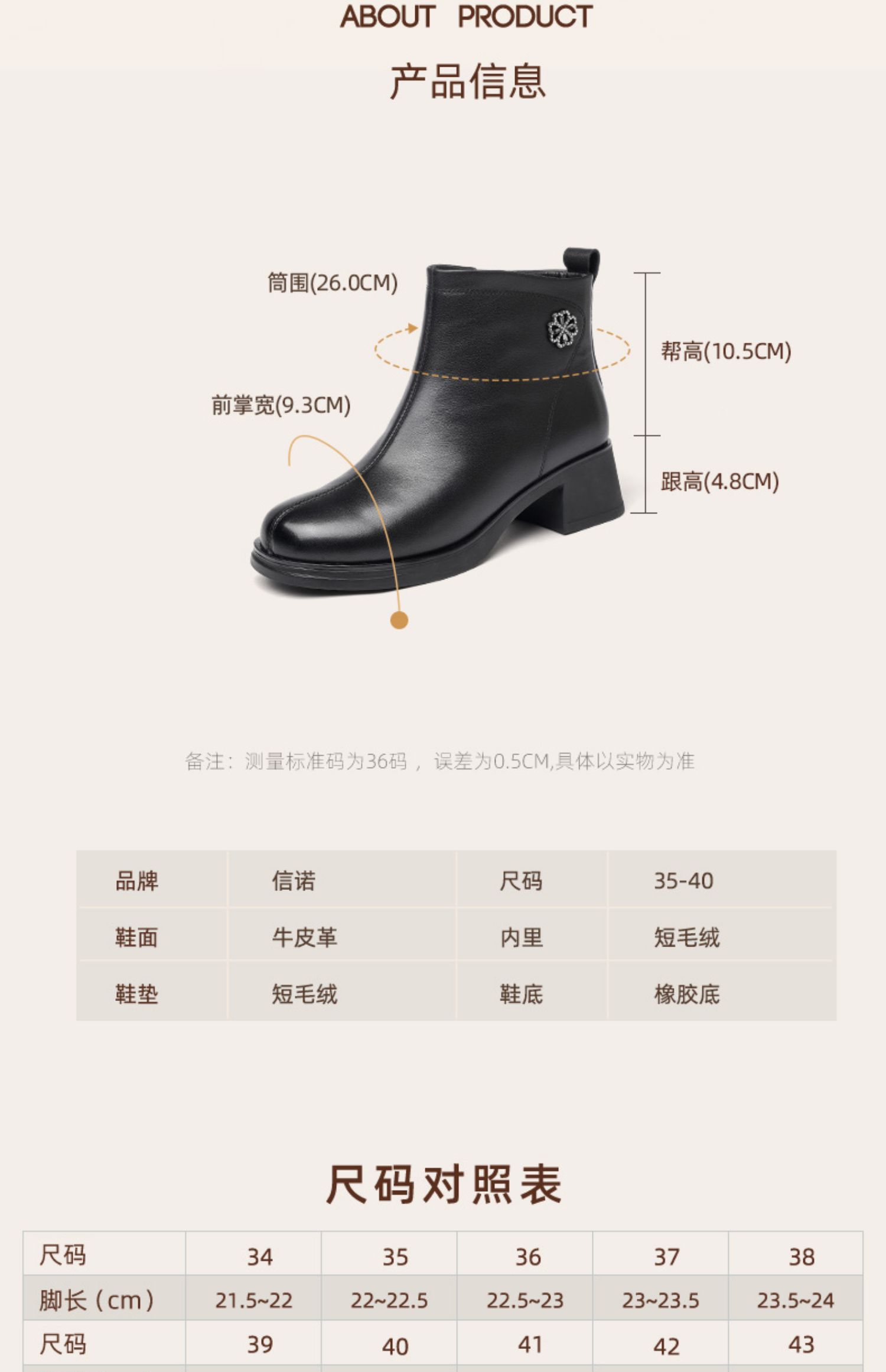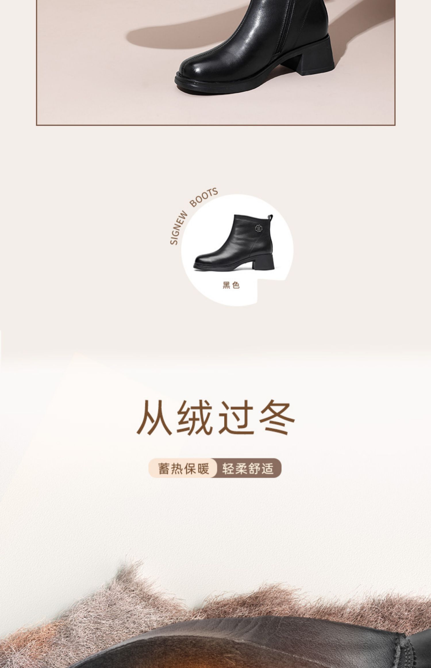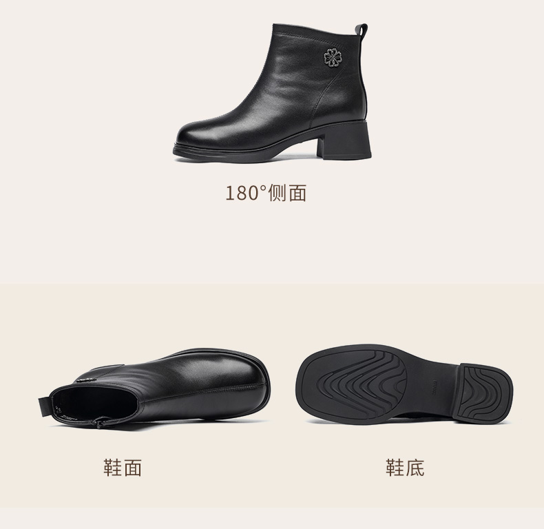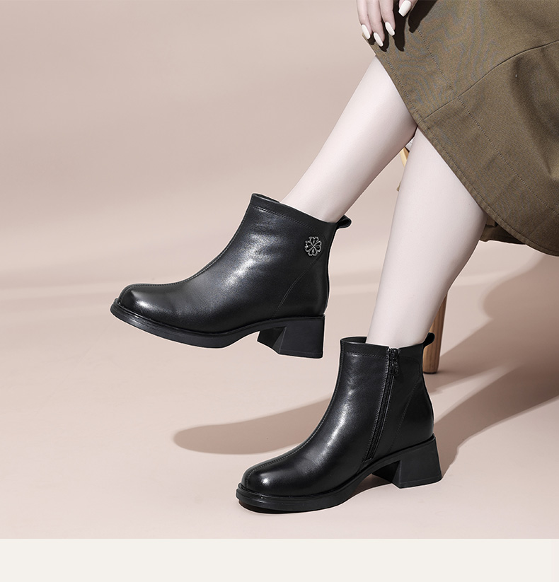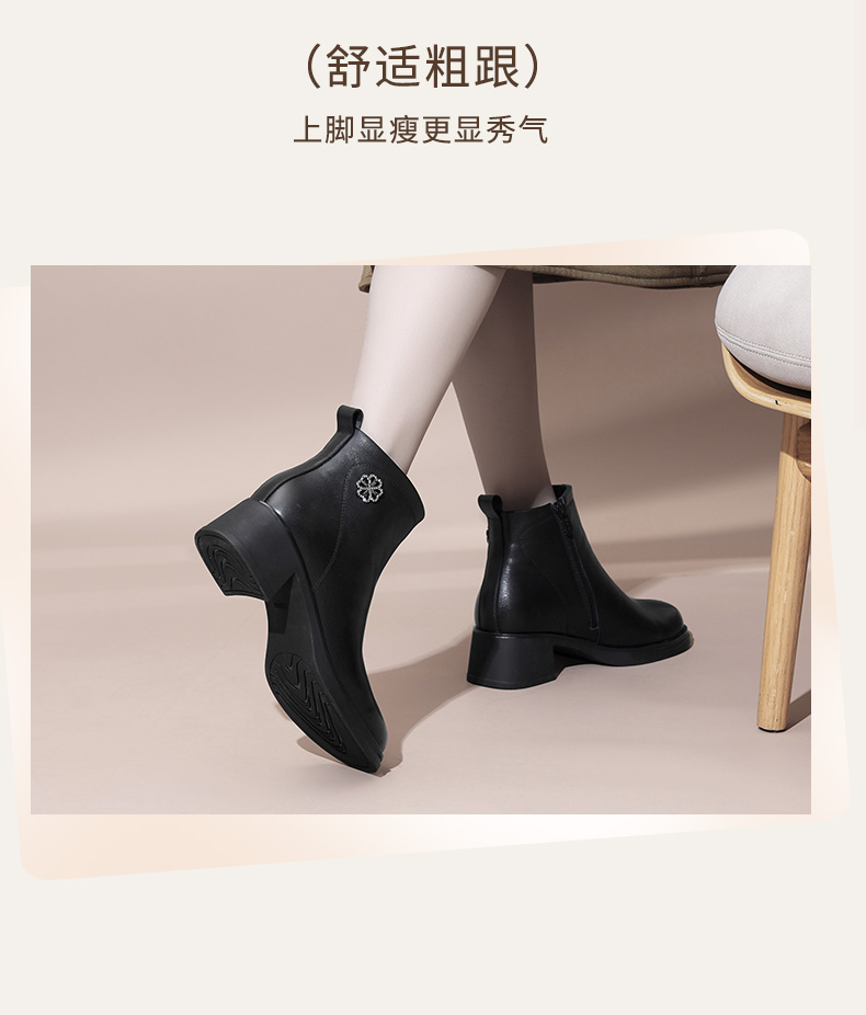 信诺粗跟厚底女士短靴真皮加绒女鞋冬季新款短筒靴子妈妈棉鞋皮鞋M321-3D